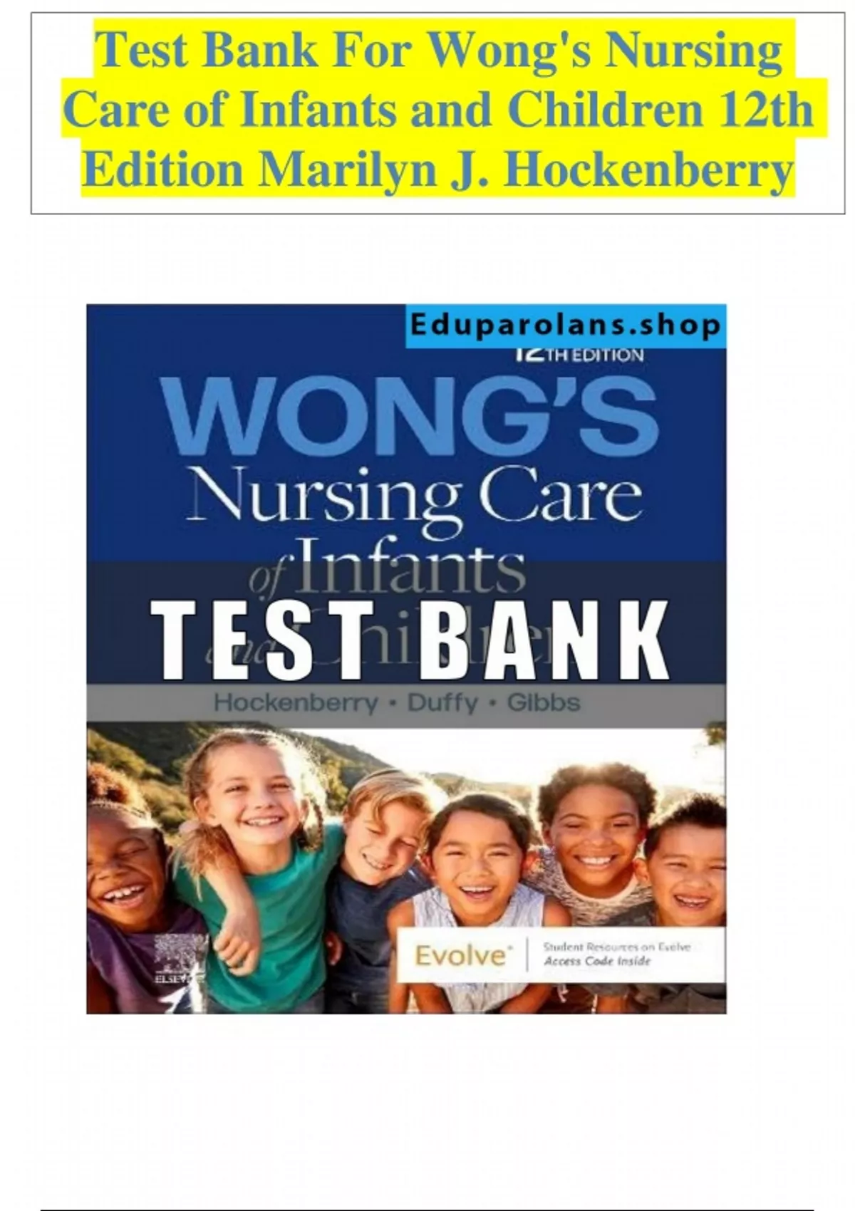 Access the complete Test Bank for Wong’s Nursing Care of Infants and Children, 12th Edition by Wilson. This resource includes NCLEX-style questions with rationales covering pediatric growth and development, family-centered care, pediatric disorders, communication techniques, and safe, evidence-based nursing interventions—ideal for nursing students focused on pediatric and neonatal care.