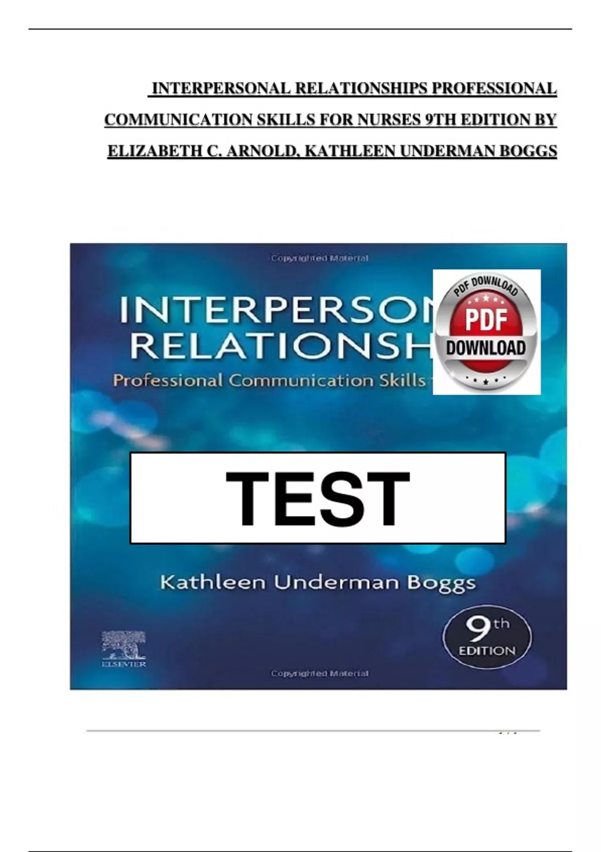 TEST BANK For Interpersonal Relationships Professional Communication Skills for Nurses 9th Edition by Elizabeth Arnold, Kathleen Boggs