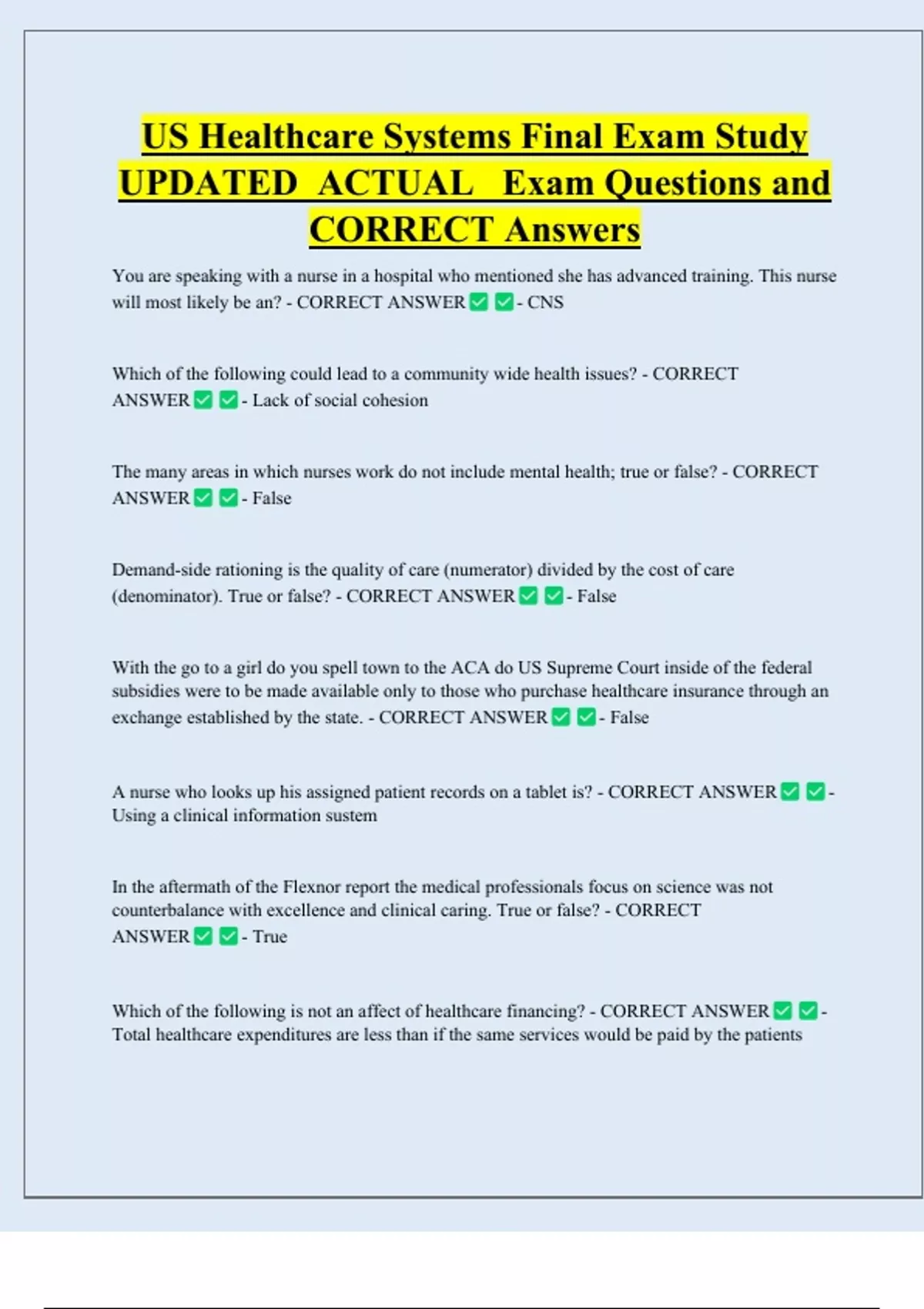 US Healthcare Systems Final Exam Study UPDATED ACTUAL Exam Questions and CORRECT Answers