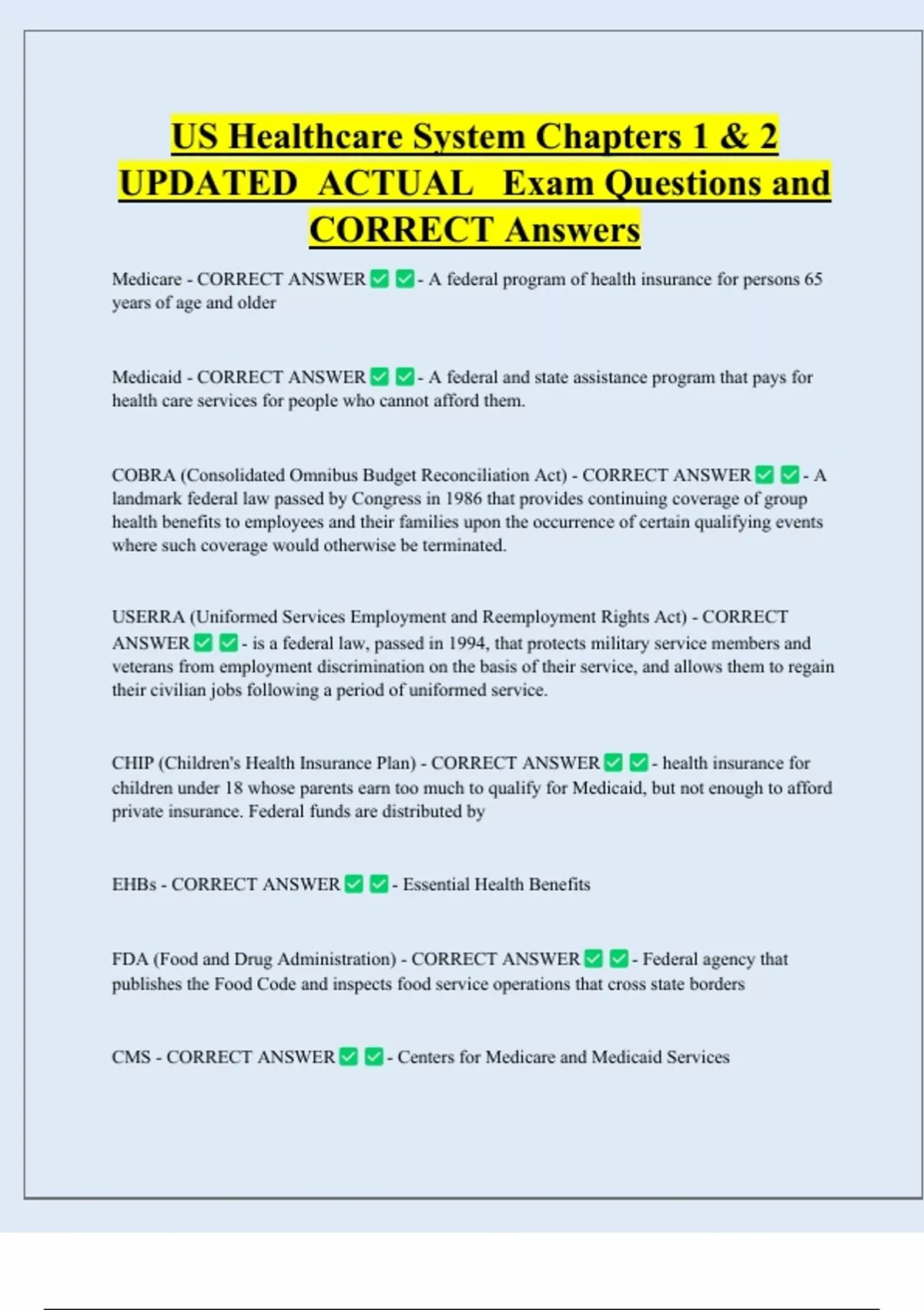 CMS - CORRECT ANSWER - Centers for Medicare and Medicaid Services