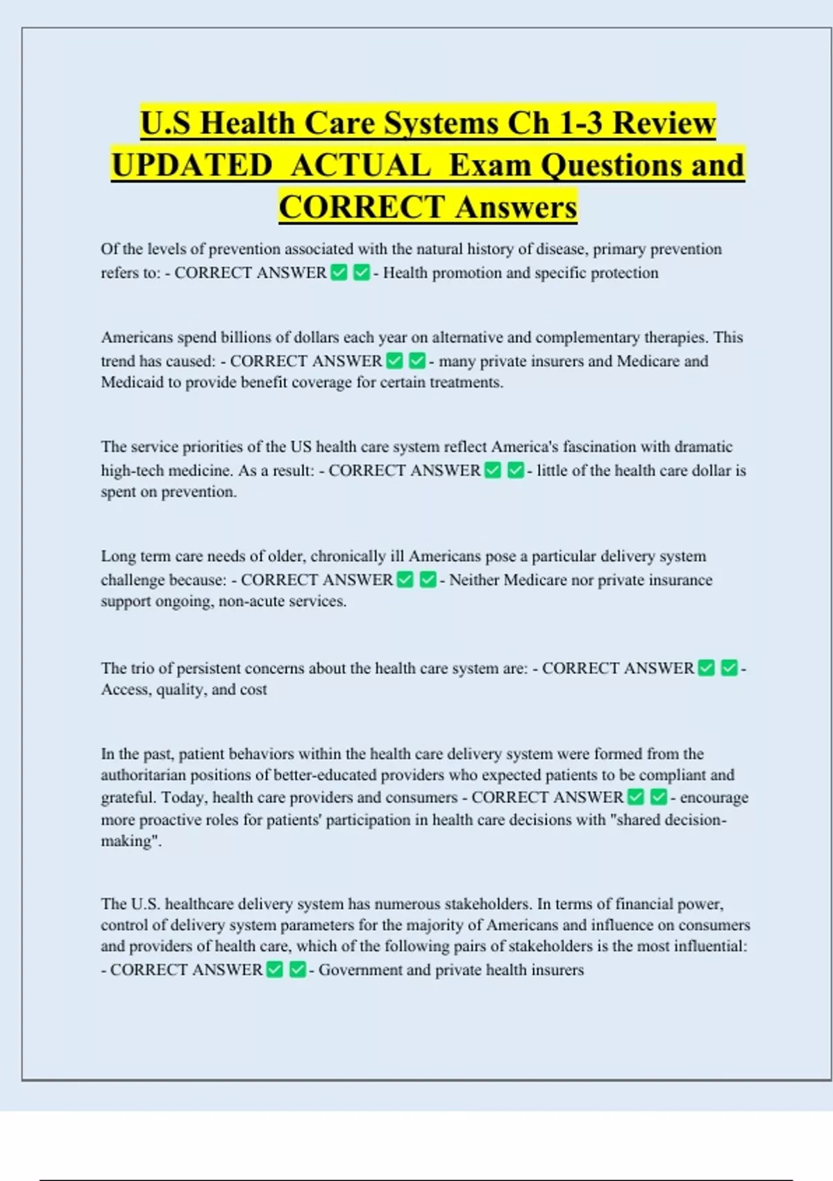 CORRECT Answers