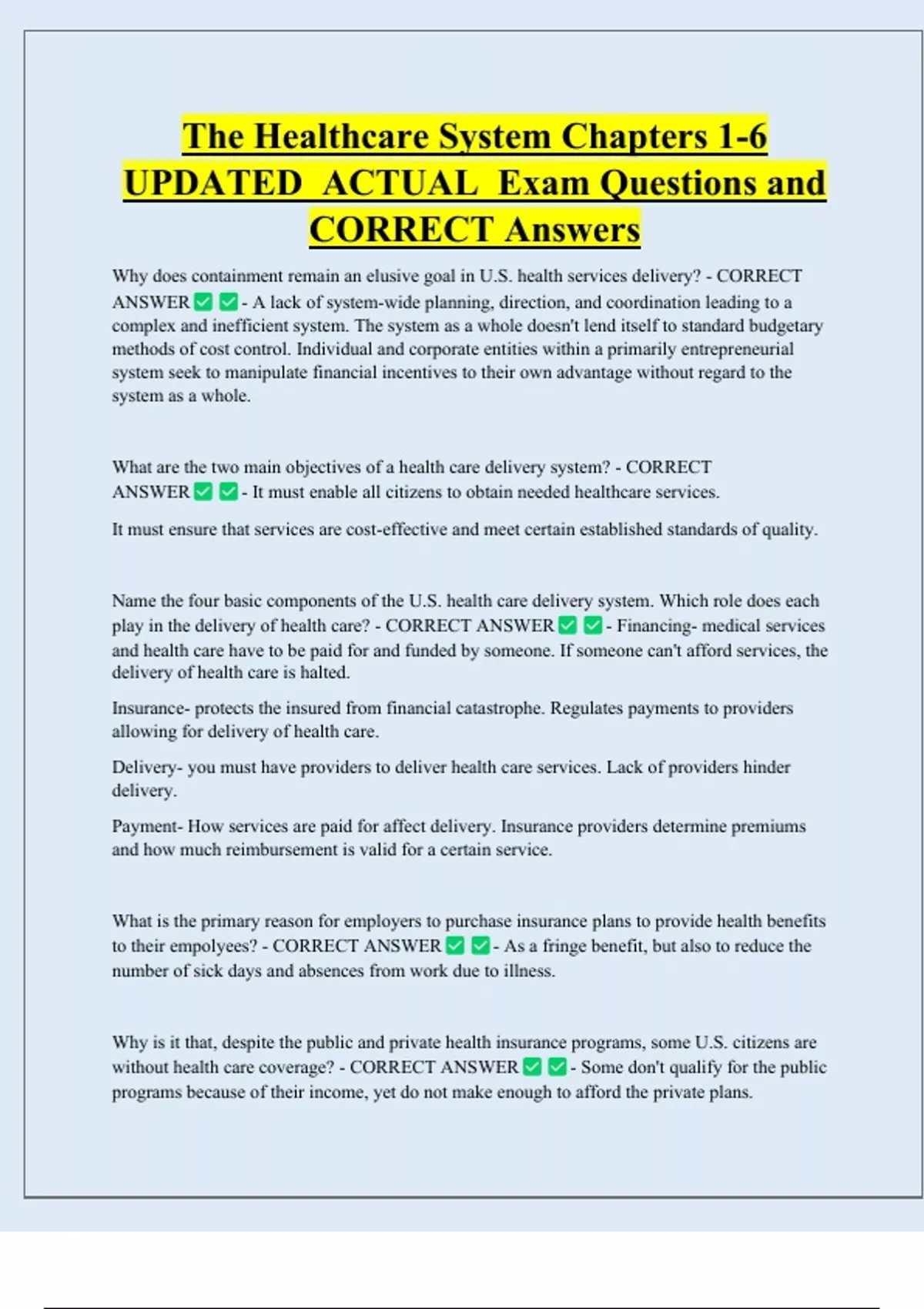 The Healthcare System Chapters 1-6 UPDATED ACTUAL Exam Questions and CORRECT Answers