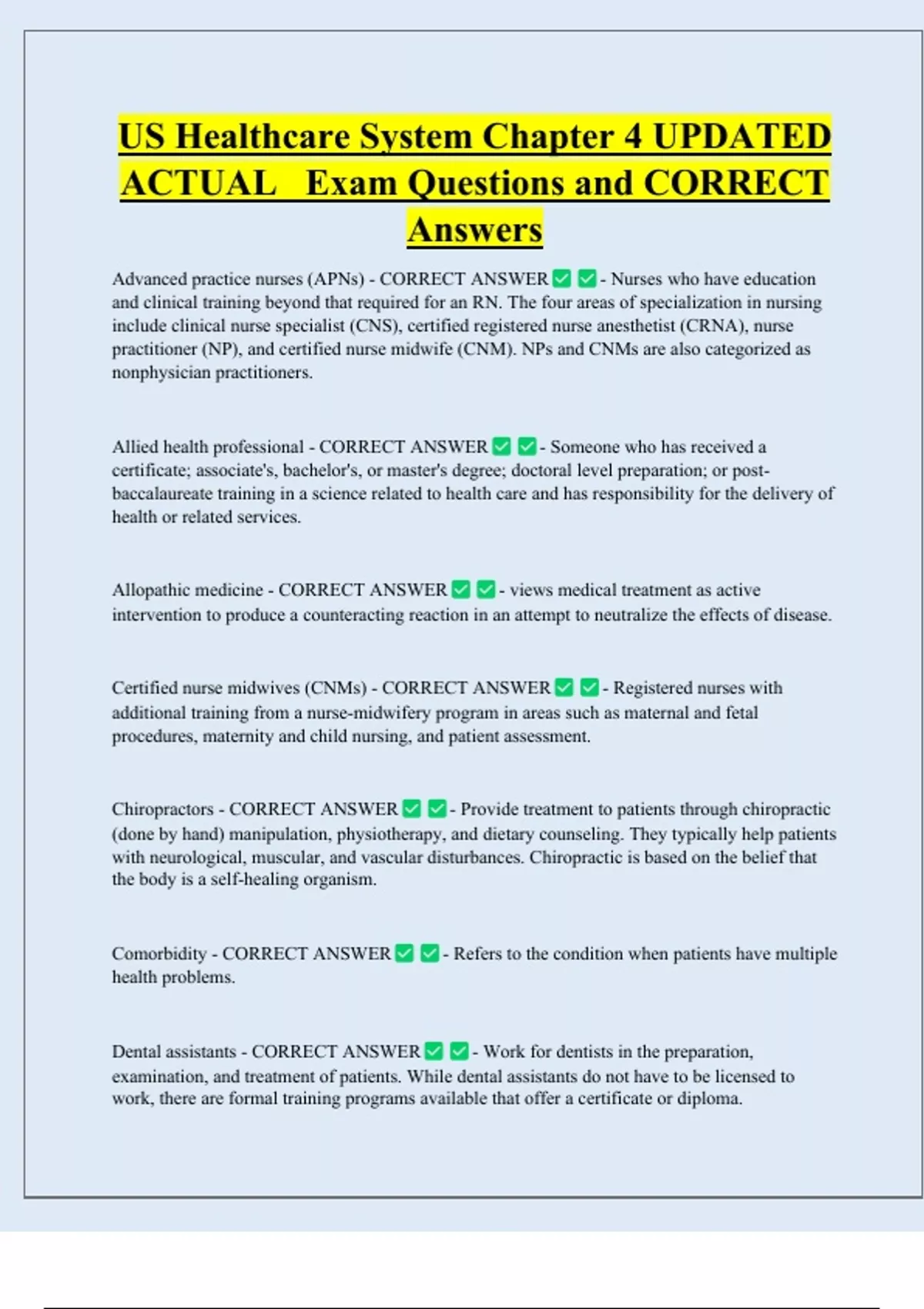 US Healthcare System Chapter 4 UPDATED ACTUAL Exam Questions and CORRECT Answers