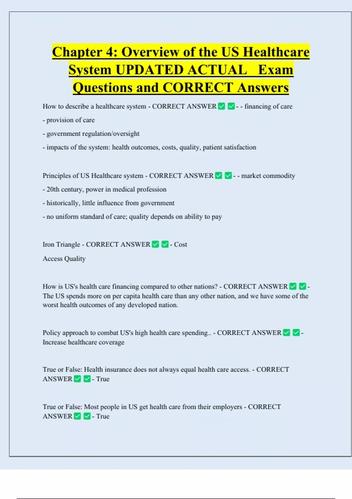 Chapter 4: Overview of the US Healthcare System UPDATED ACTUAL Exam Questions and CORRECT Answers