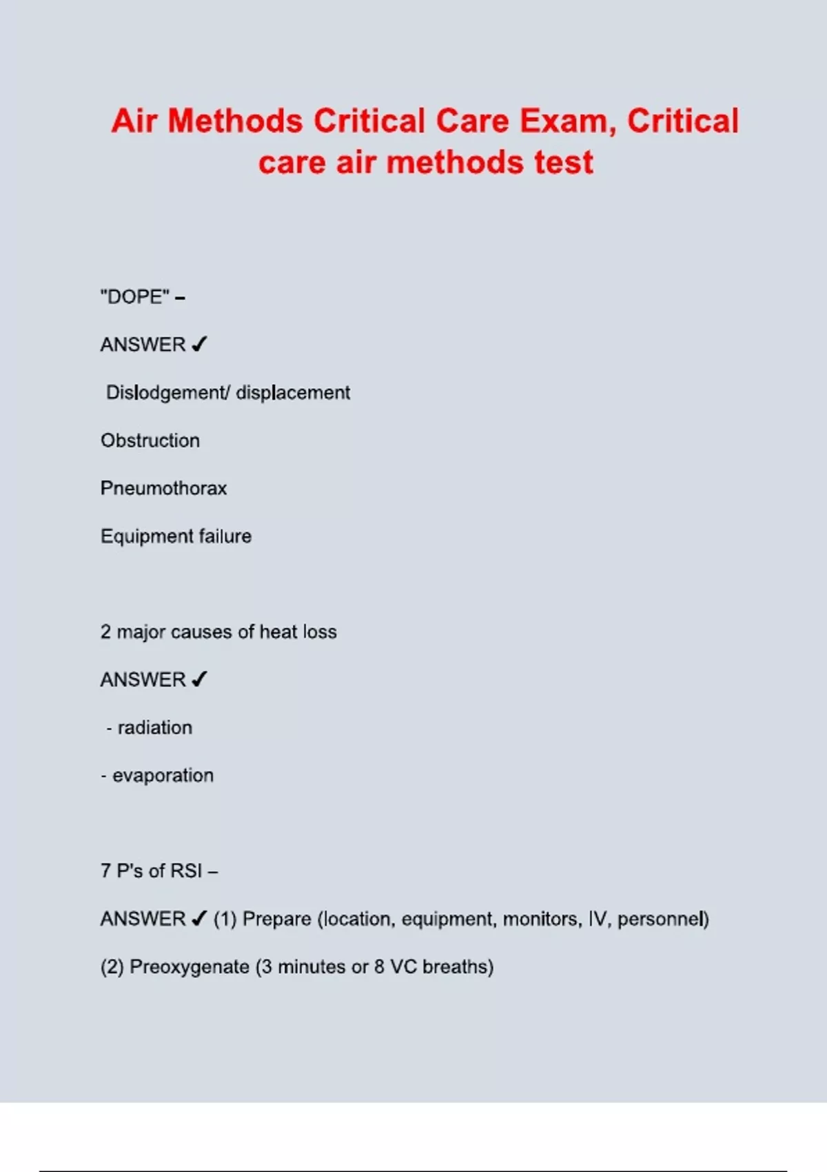 EXAM FOR Air Methods Critical Care & Critical care air methods test (Latest 2025/ 2026 Update) Questions and Verified Answers| 100% Correct| Grade A+