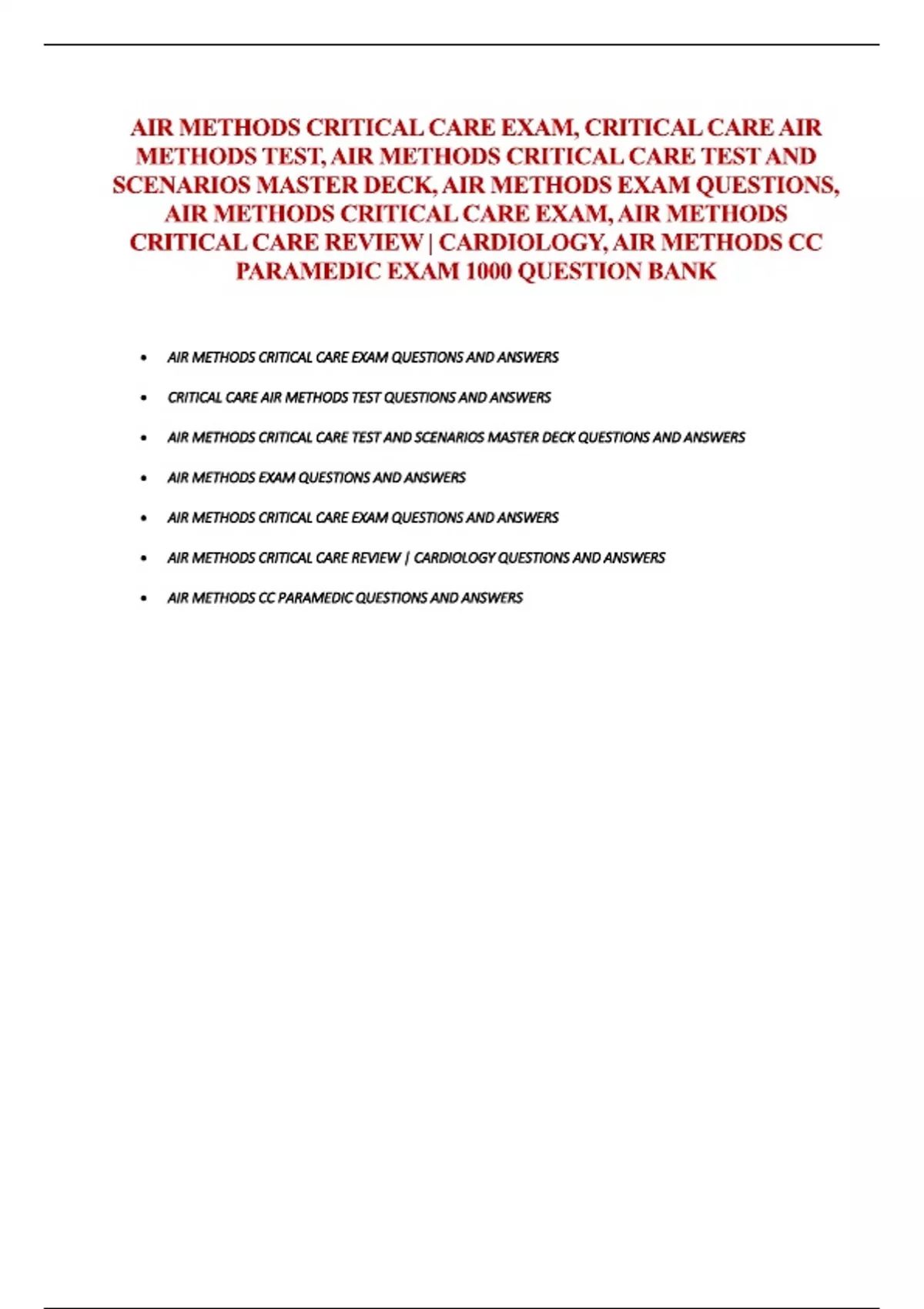 AIR METHODS CRITICAL CARE EXAM ALL VERSIONS QUESTIONS AND ANSWERS.