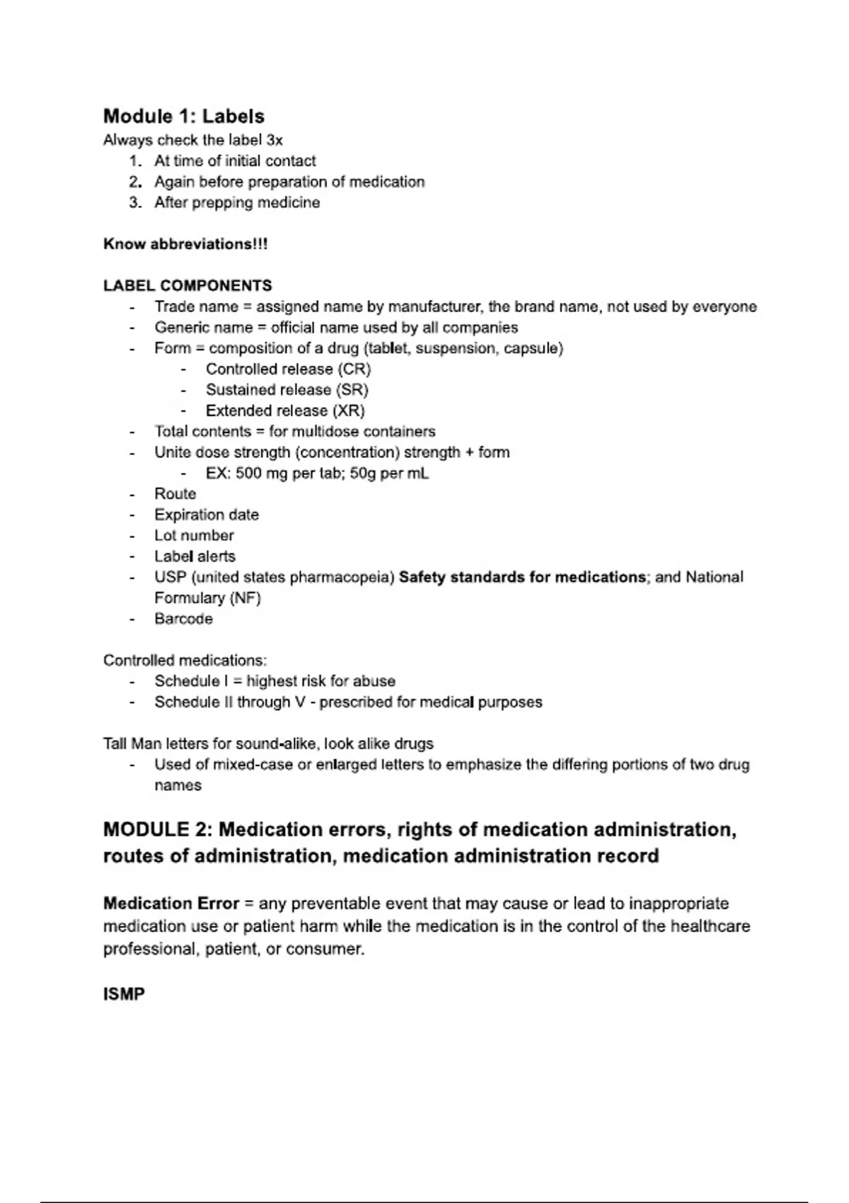 Dosage & Medication Administration Final Exam Notes (Module 1-7)