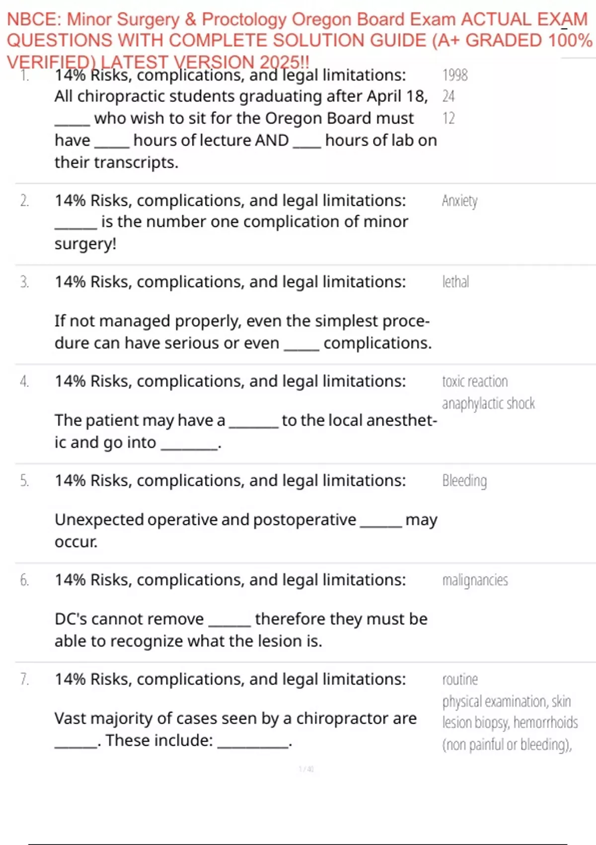 , NBCE: Minor Surgery & Proctology Oregon Board Exam