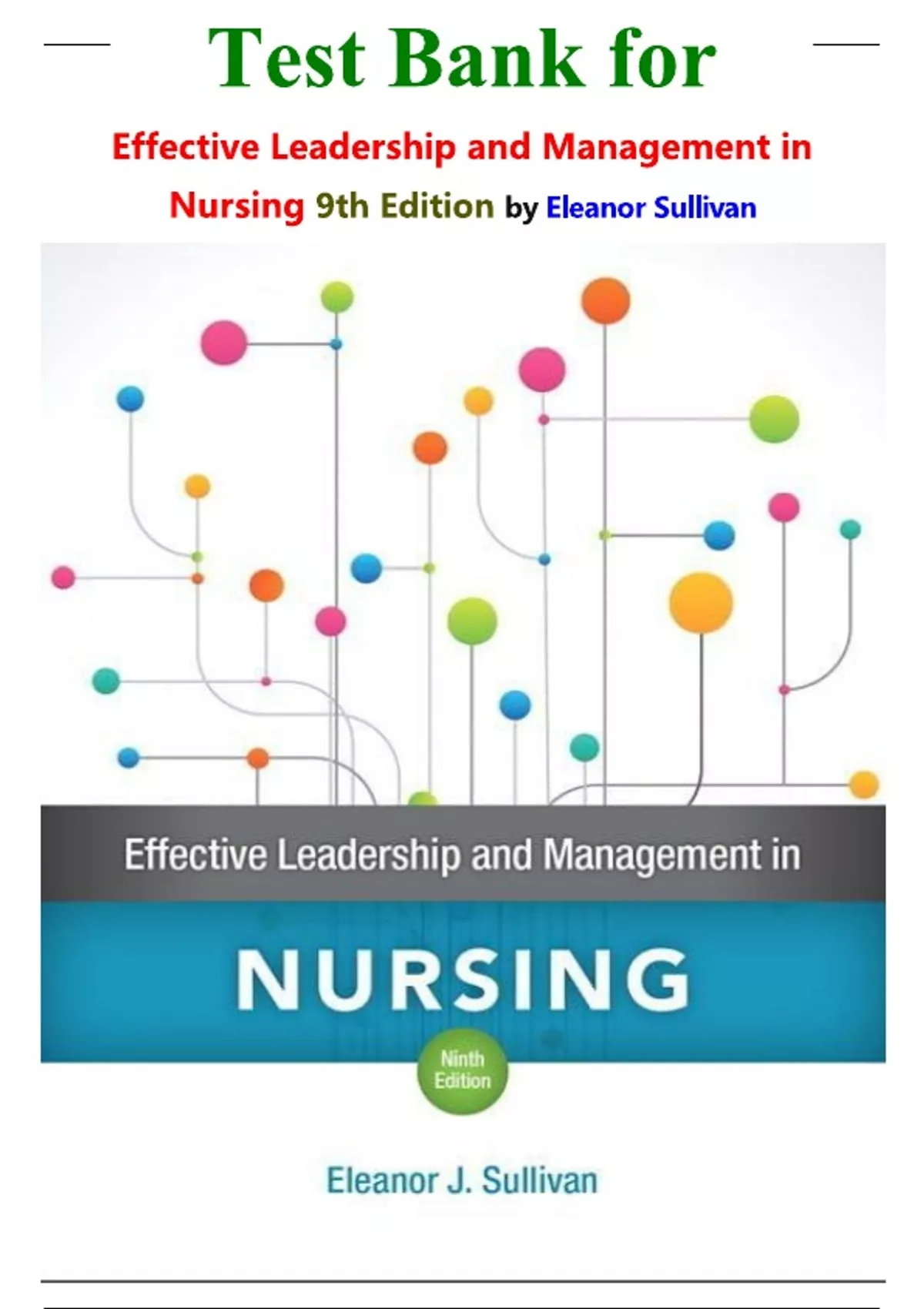 Test Bank for Effective Leadership and Management in Nursing 9th Edition by Eleanor Sullivan isbn-9780134153117 Questions and Verified Answers