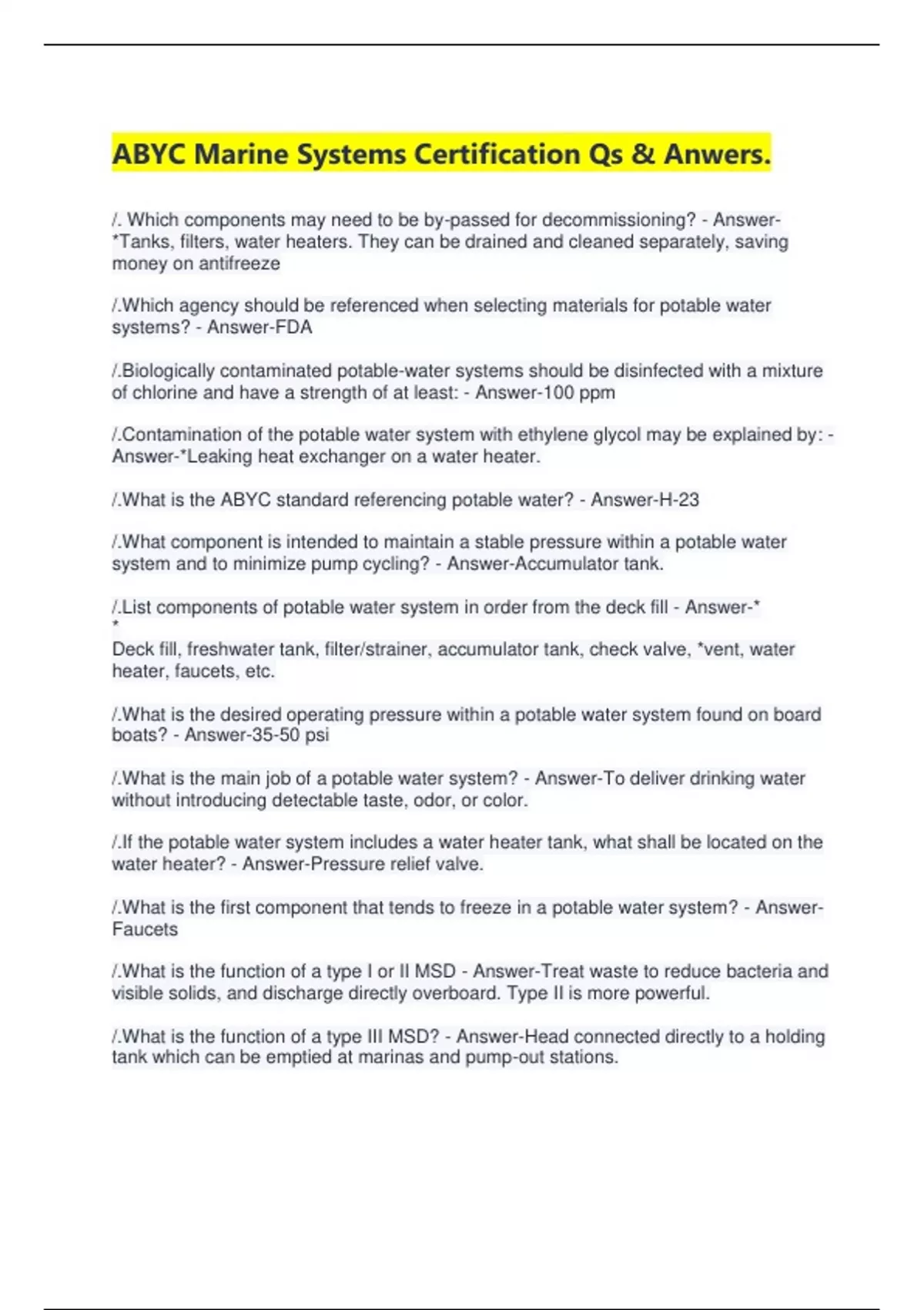 /.What is the ABYC standard referencing potable water? - Answer-H-23