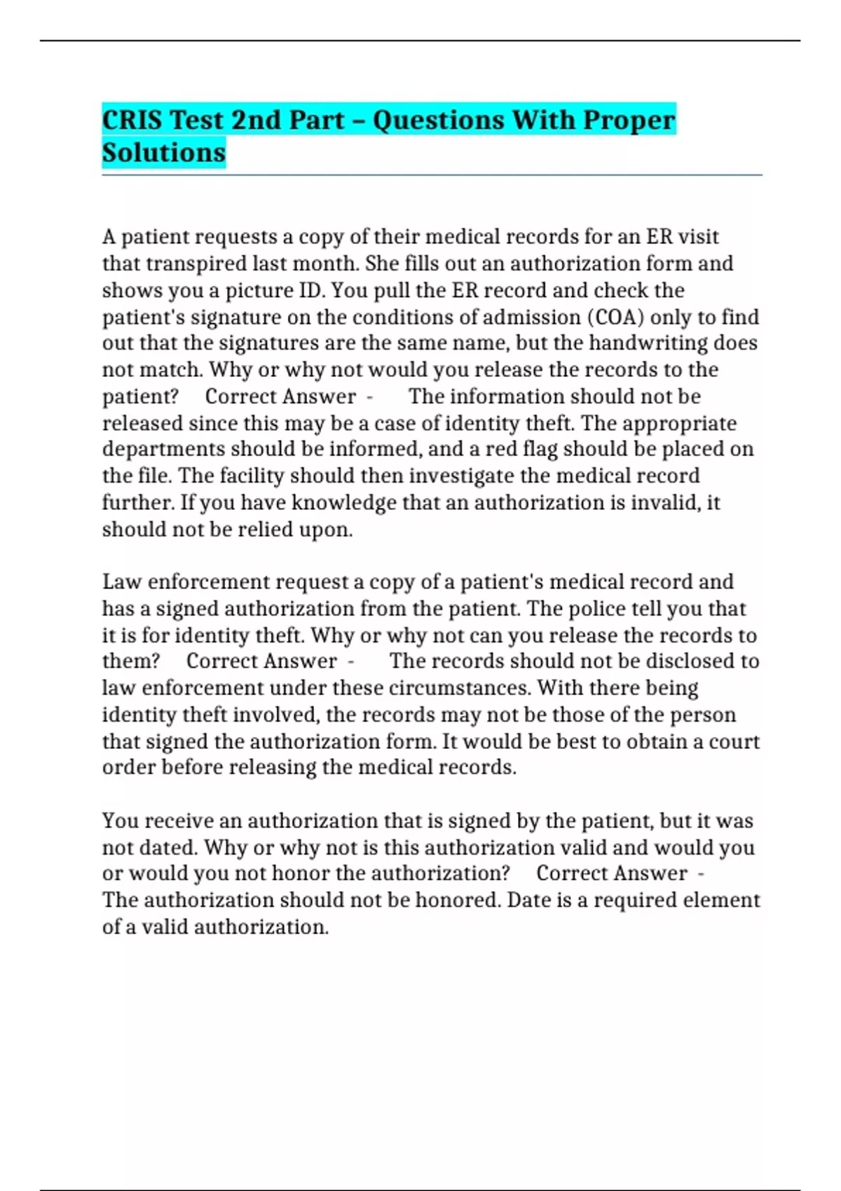 CRIS Test 2nd Part – Questions With Proper Solutions