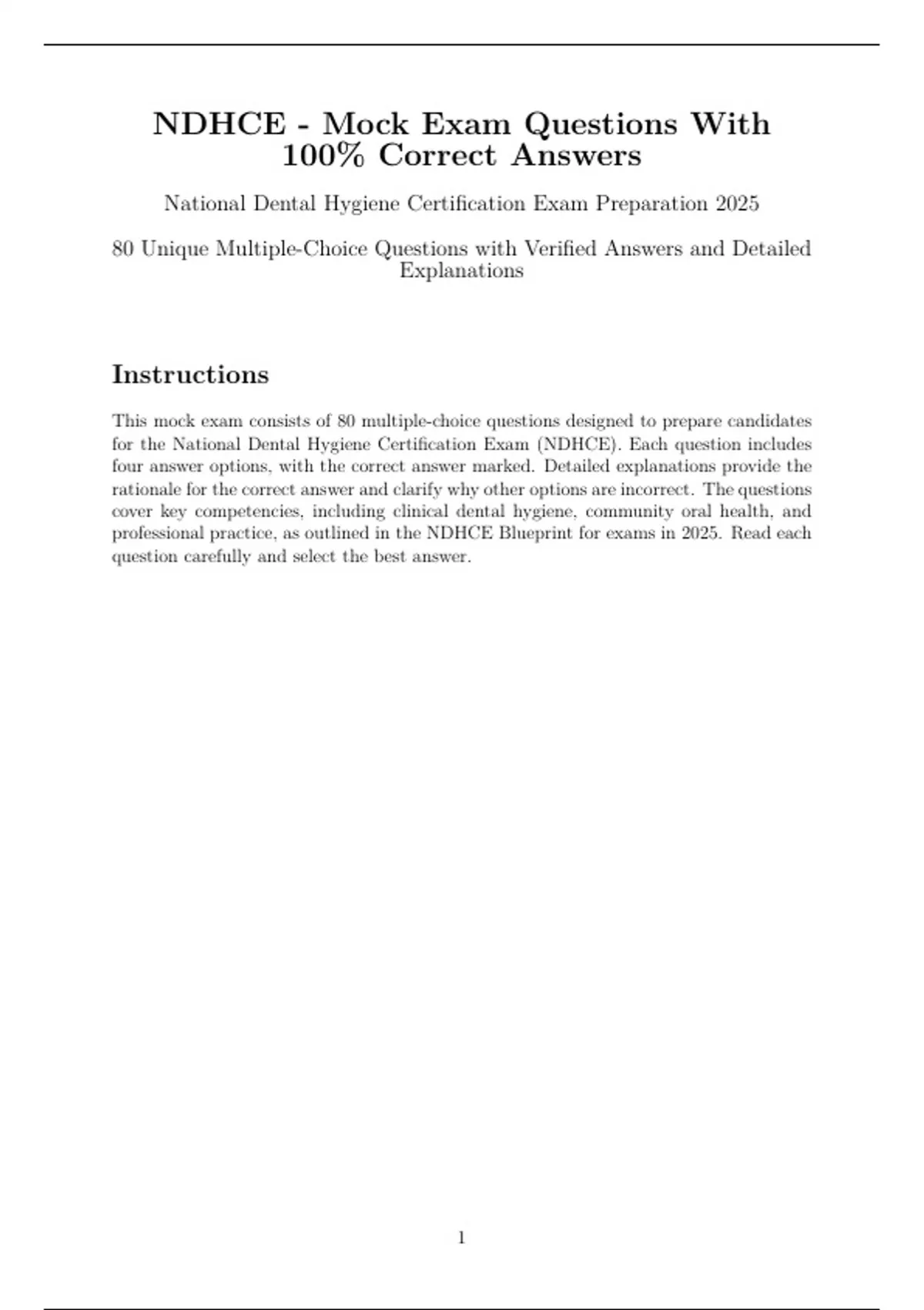 for the National Dental Hygiene Certification Exam (NDHCE). Each question includes