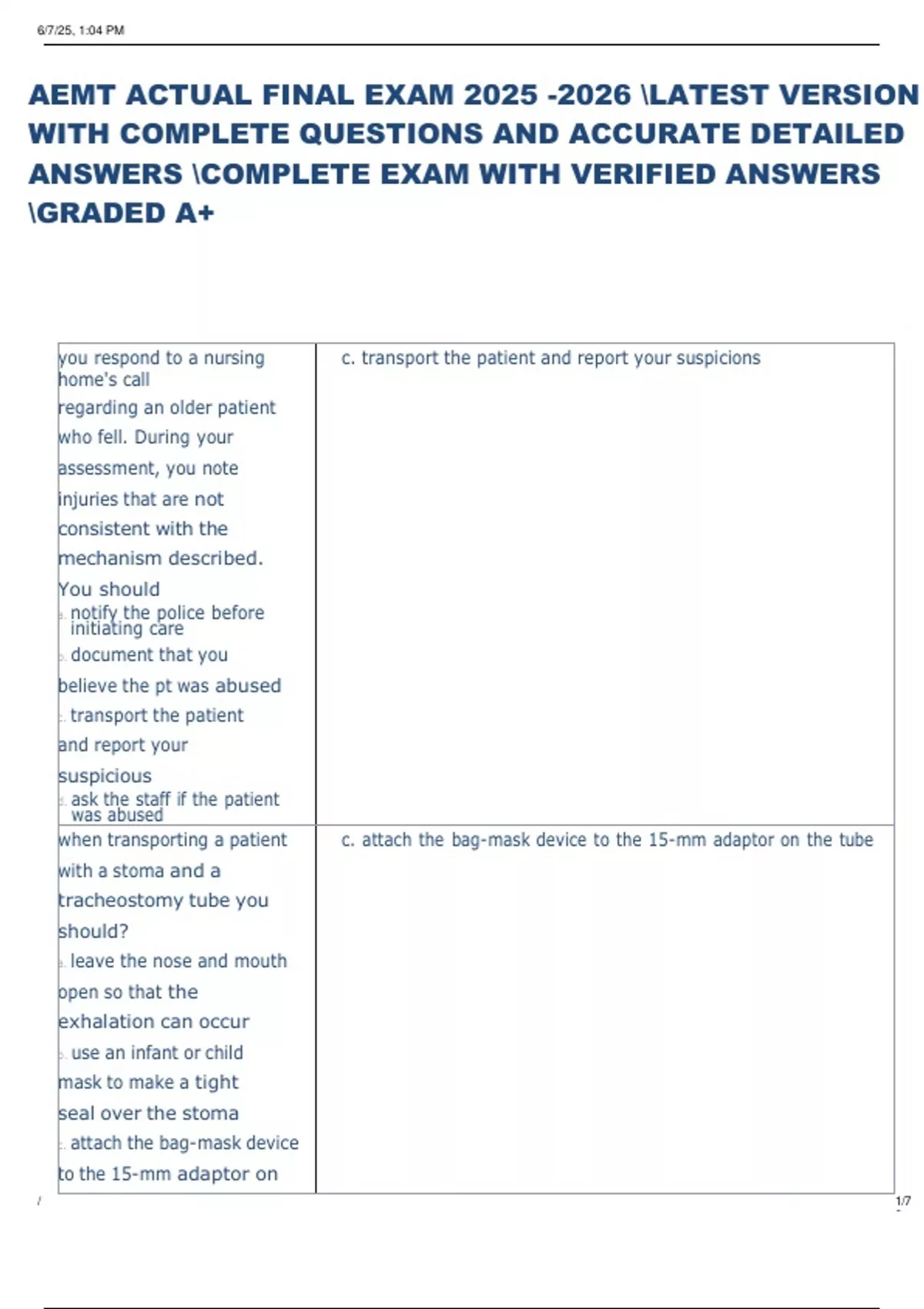 AEMT ACTUAL FINAL EXAM 2025 -2026 \LATEST VERSION