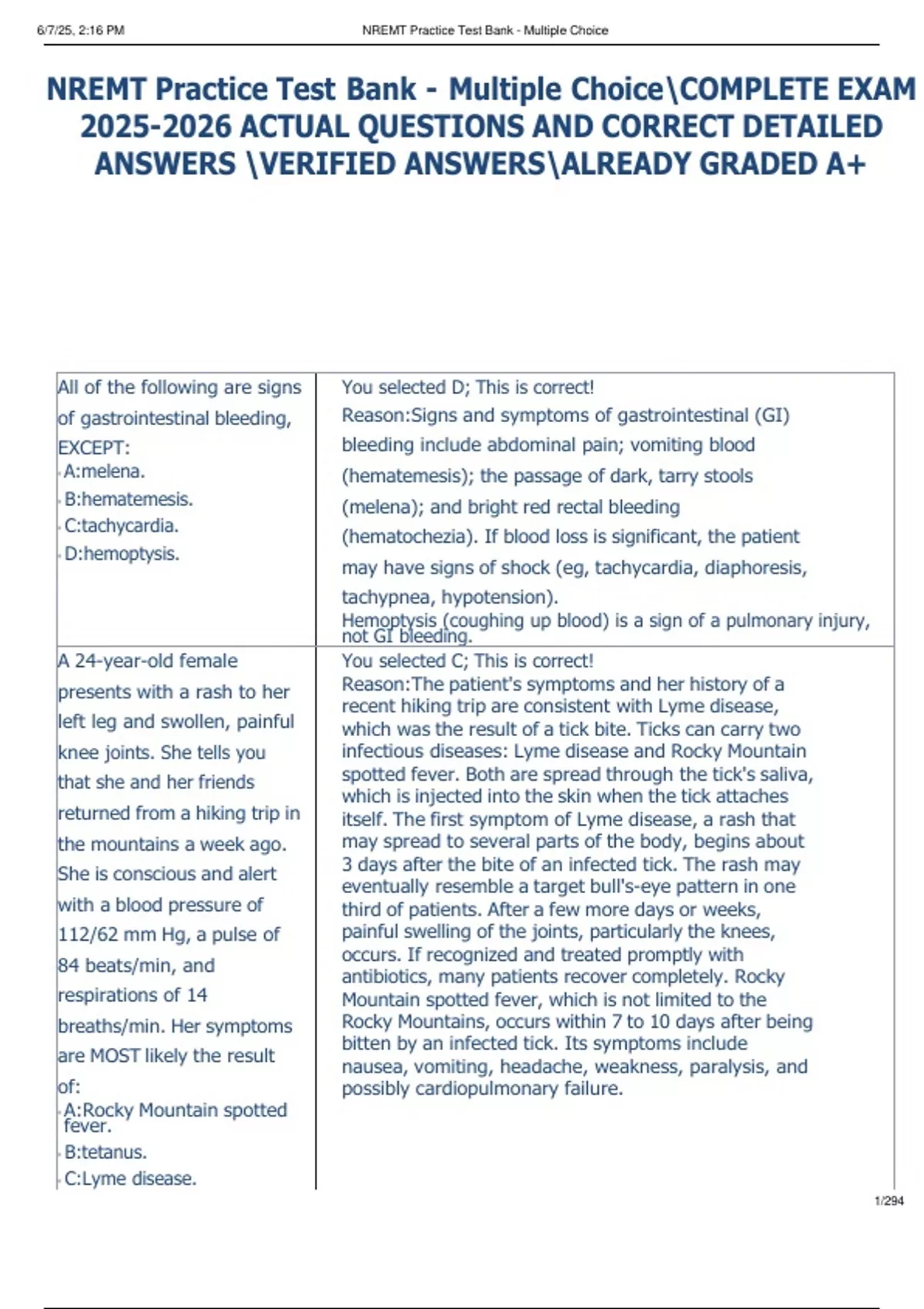 , 6/7/25, 2:16 PM NREMT Practice Test Bank - Multiple Choice