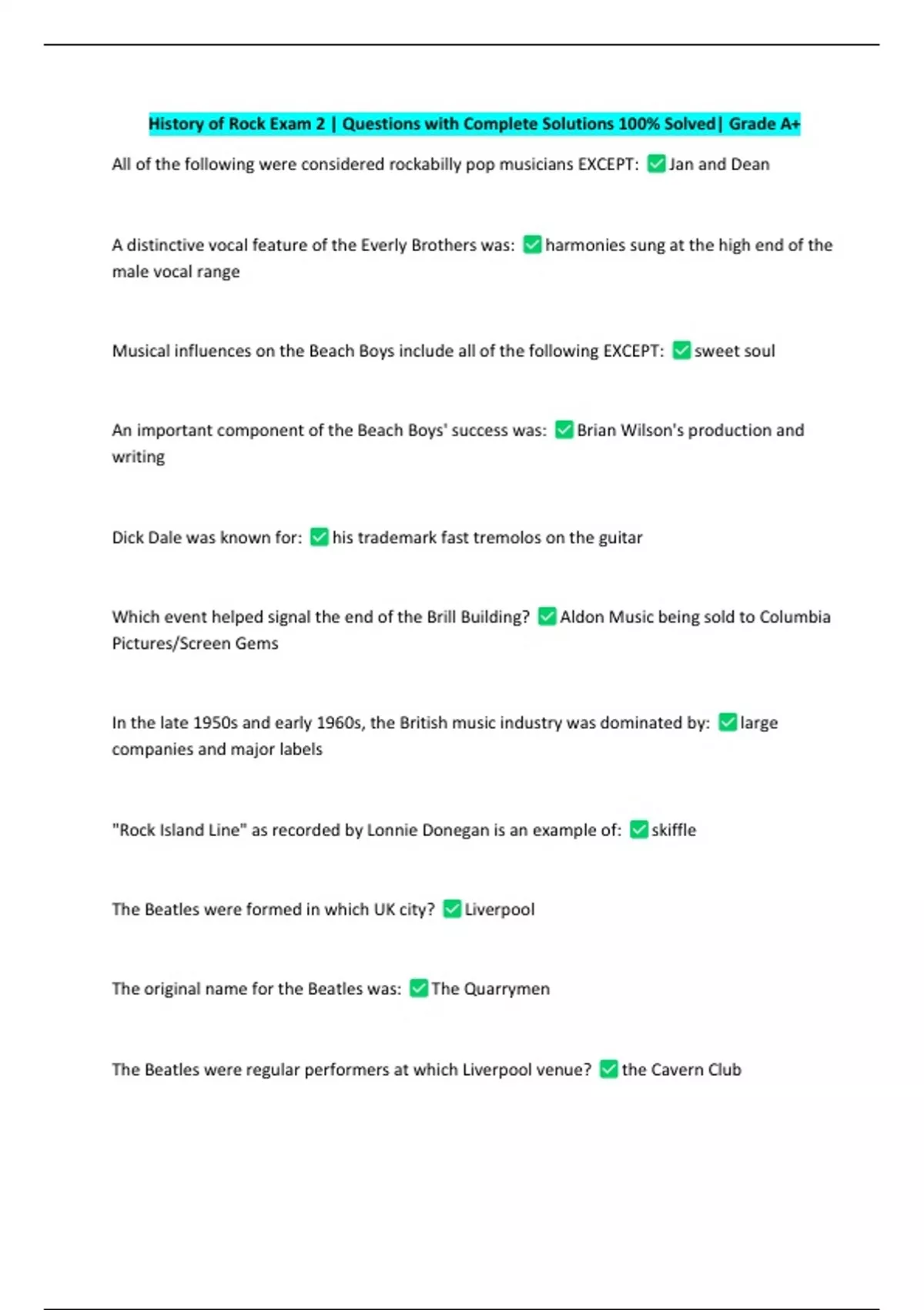 History of Rock Exam 2 | Questions with Complete Solutions 100% Solved| Grade A+