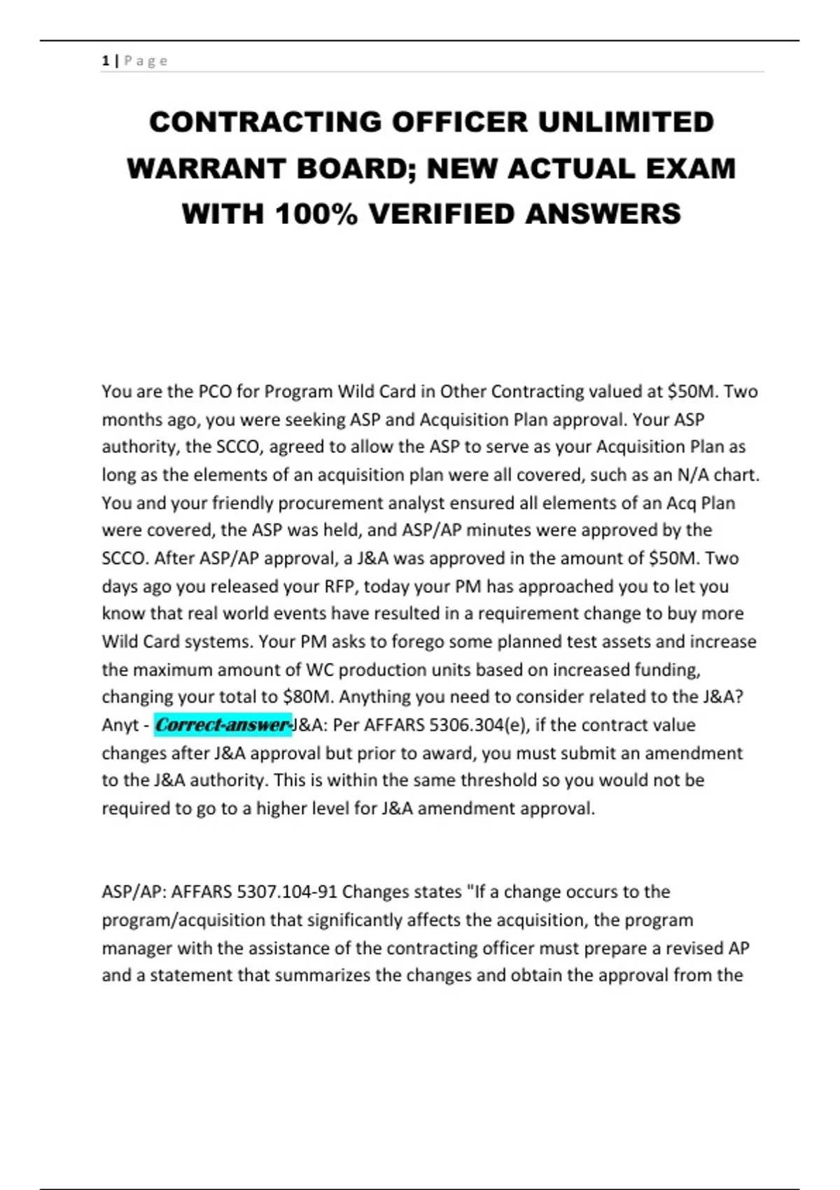 Anyt - Correct-answer-J&A: Per AFFARS 5306.304(e), if the contract value