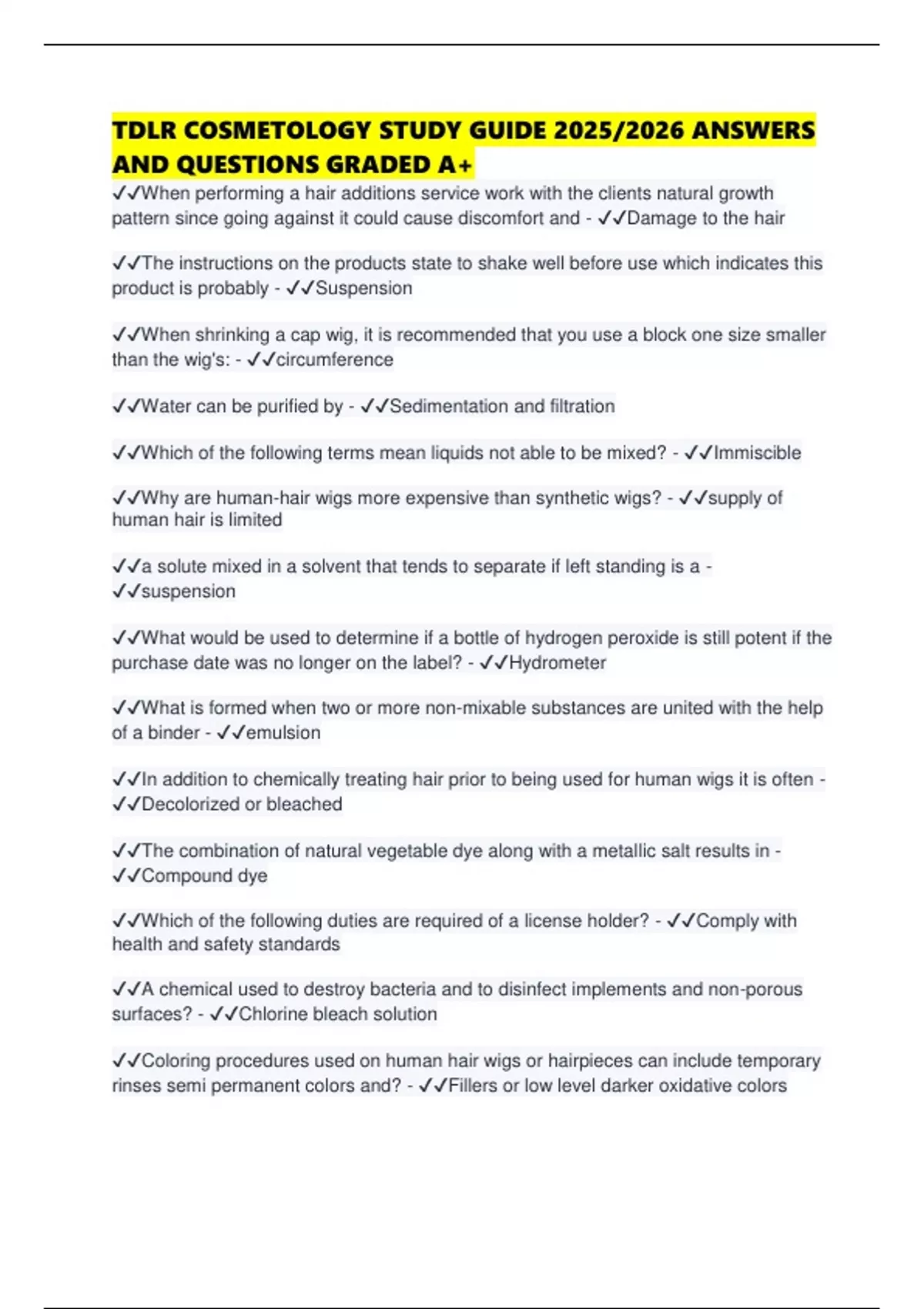 TDLR COSMETOLOGY STUDY GUIDE 2025/2026 ANSWERS AND QUESTIONS GRADED A+