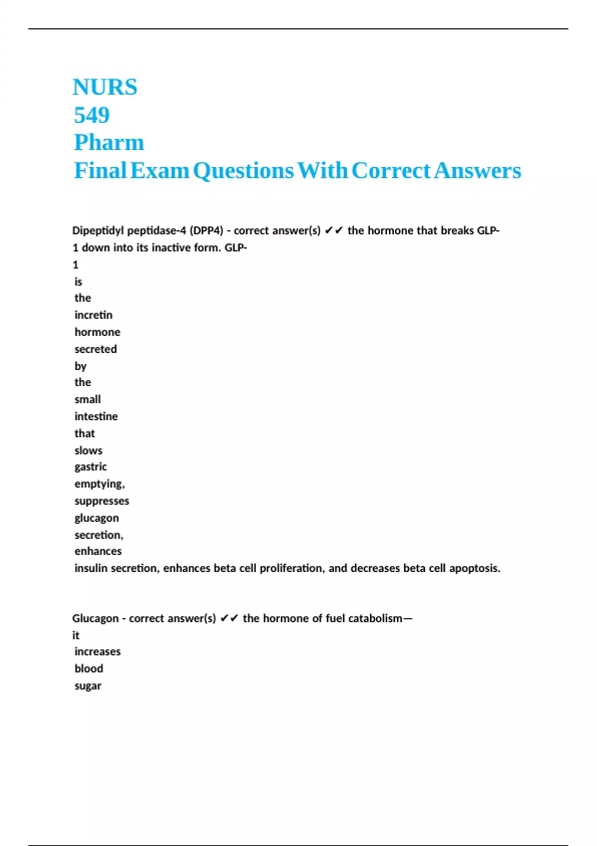 NURS 549 Pharm Final Exam Questions With Correct Answers.