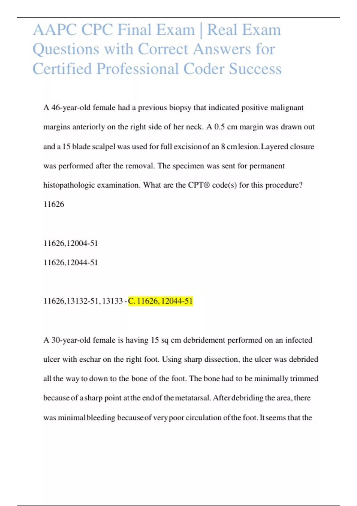 A 30-year-old female is having 15 sq cm debridement performed on an infected