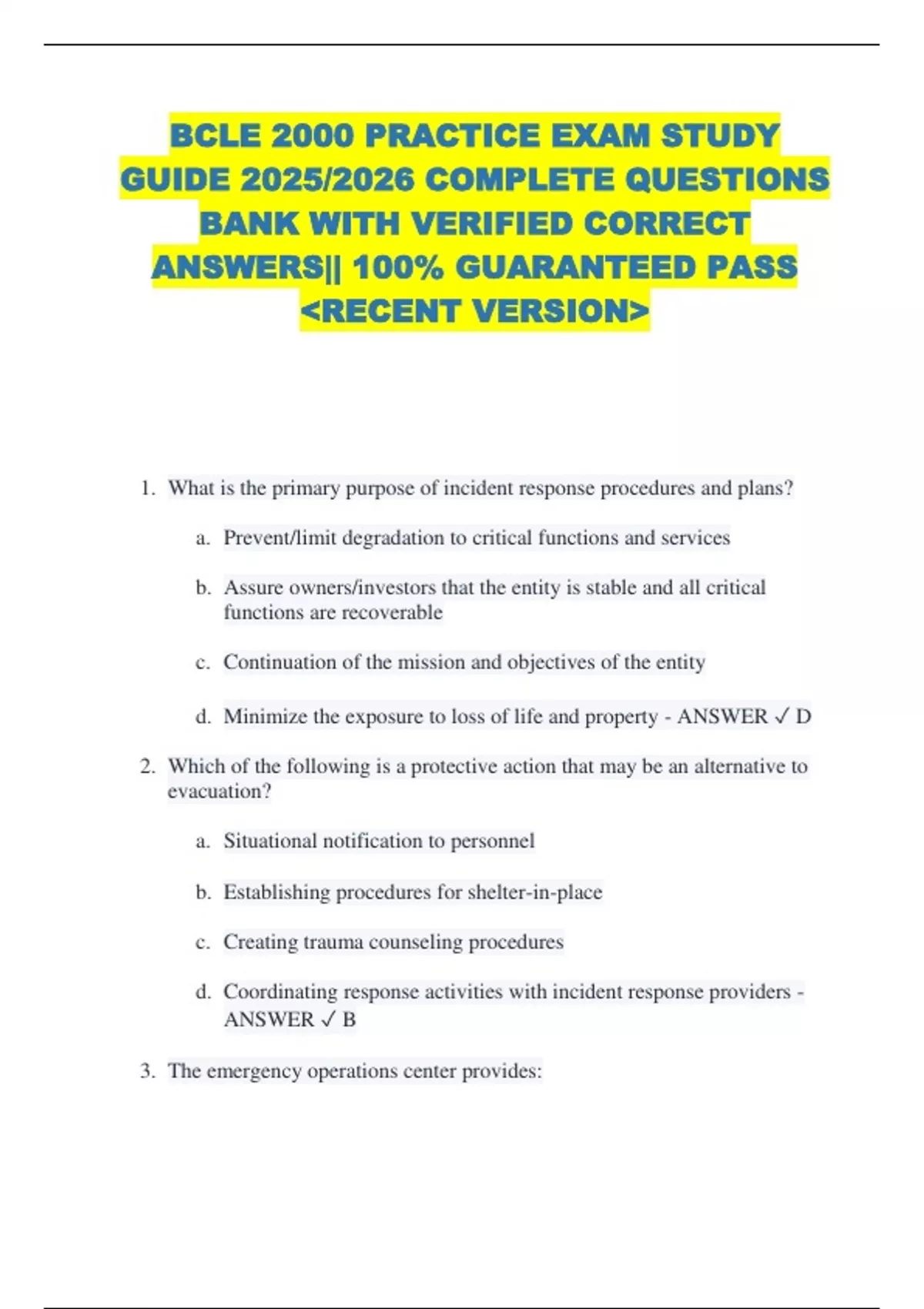 ANSWERS|| 100% GUARANTEED PASS