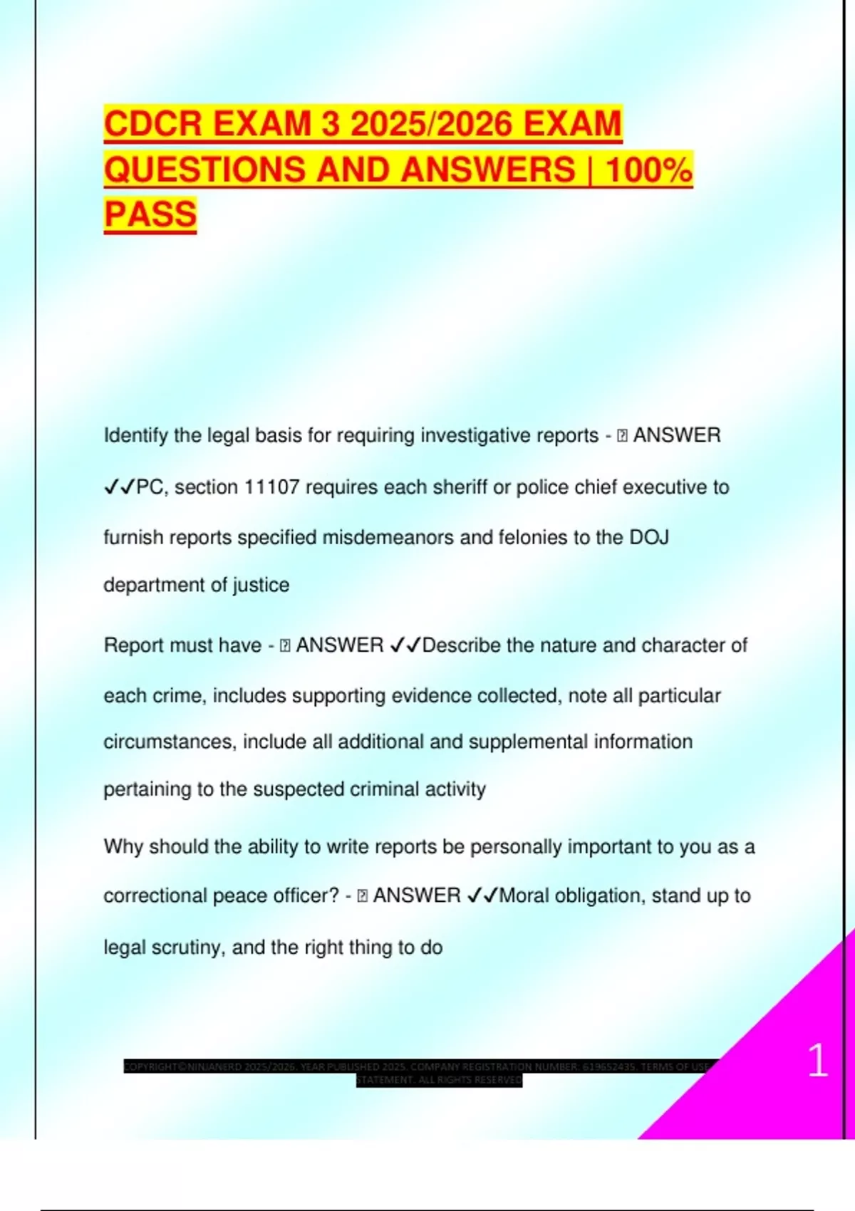 CDCR EXAM 3 2025/2026 EXAM QUESTIONS AND ANSWERS | 100% PASS