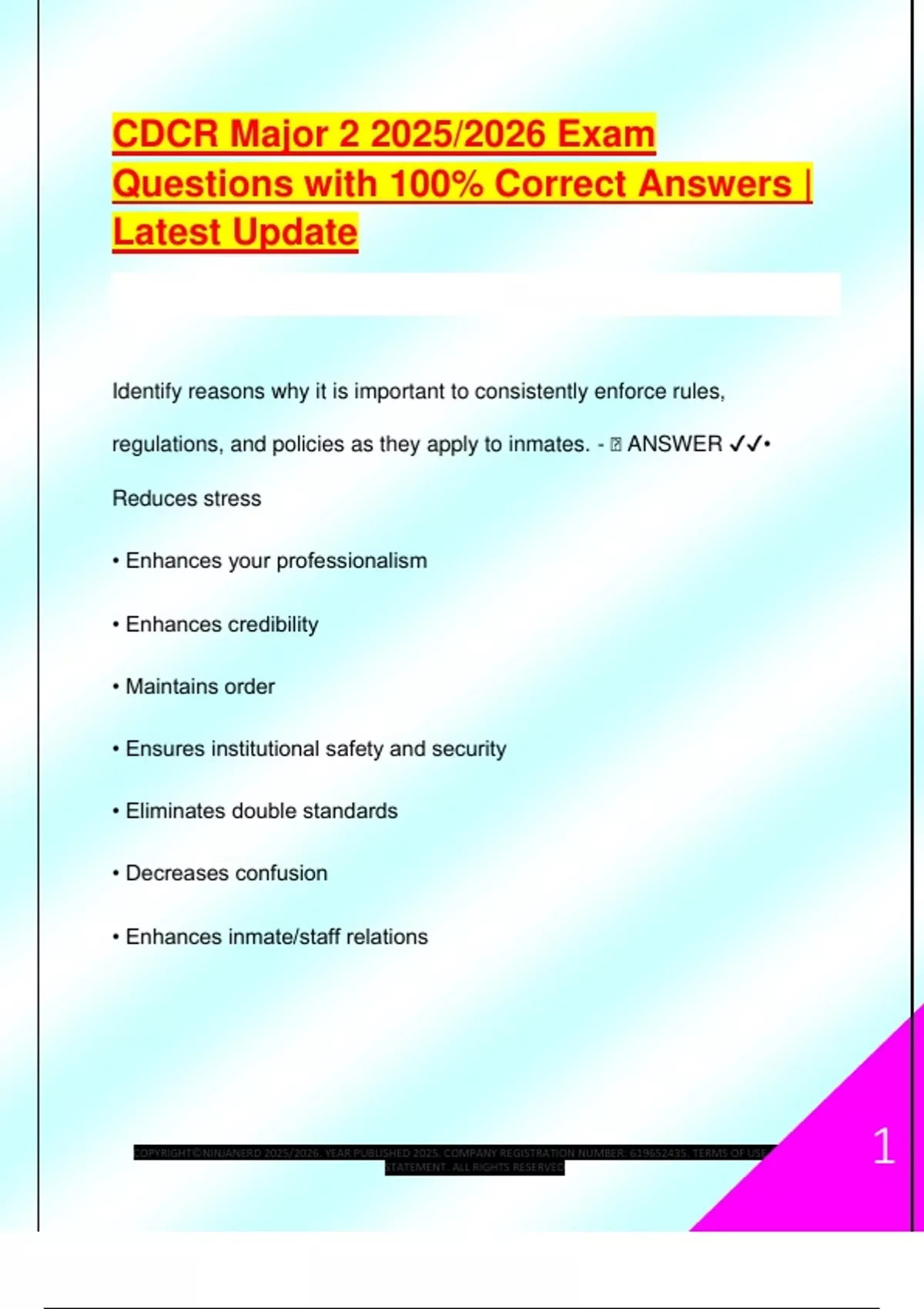 CDCR Major 2 2025/2026 Exam Questions with 100% Correct Answers | Latest Update