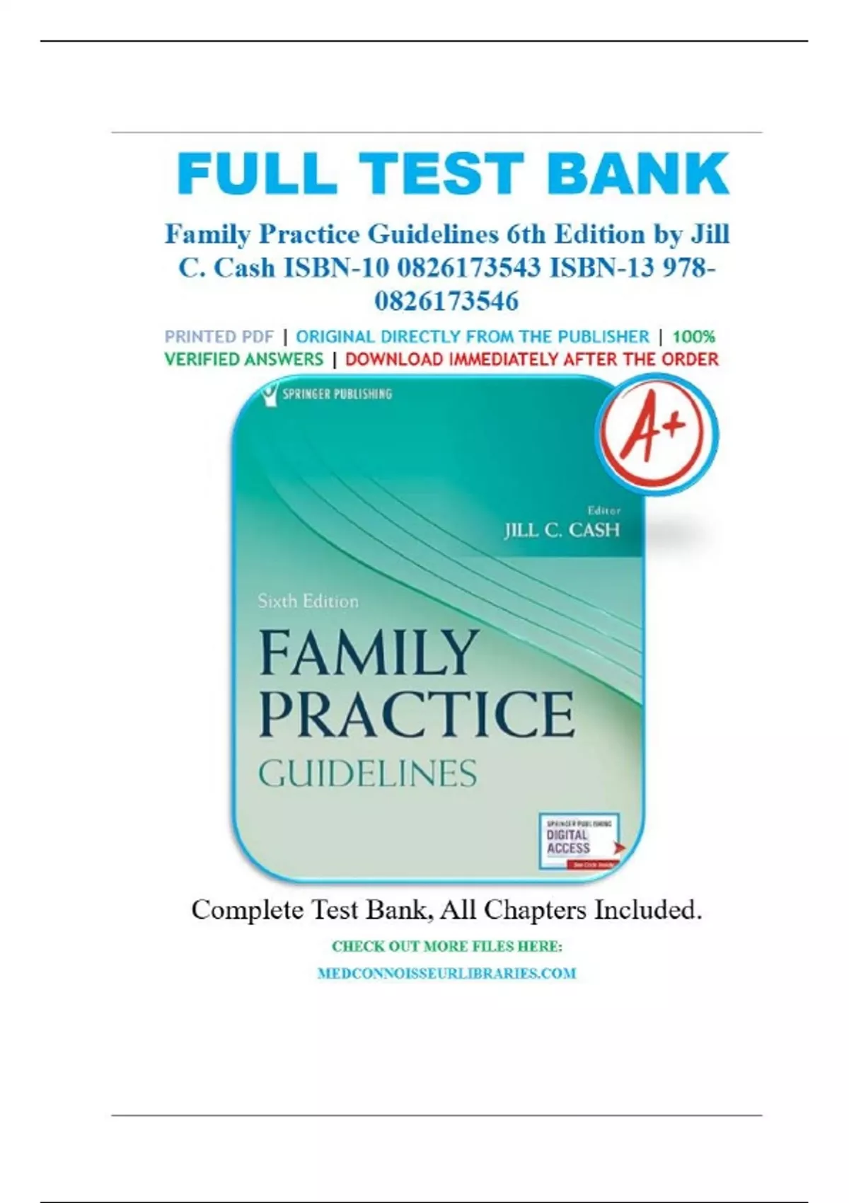 Test Banks For Family Practice Guidelines 6th Edition (Cash,20223), Chapter 1-23 | All Chapters.