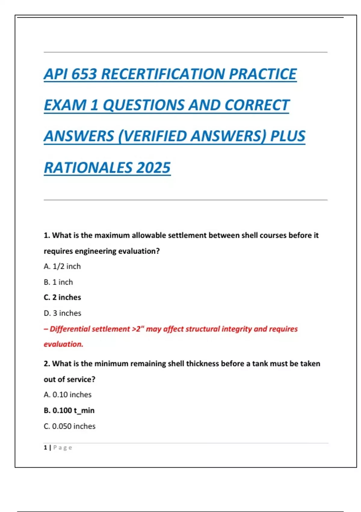 – Per API 653, minimum thickness must not fall below 0.100 × t_min.