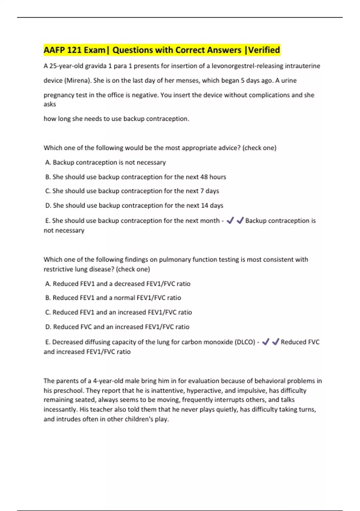 AAFP 121 Exam| Questions with Correct Answers |Verified