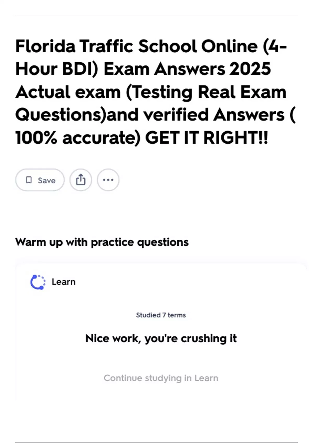 Florida Traffic School Online (4-Hour BDI) Exam Answers 2025 Actual exam (Testing Real Exam Questions)and verified Answers ( 100% accurate) GET IT RIGHT!!