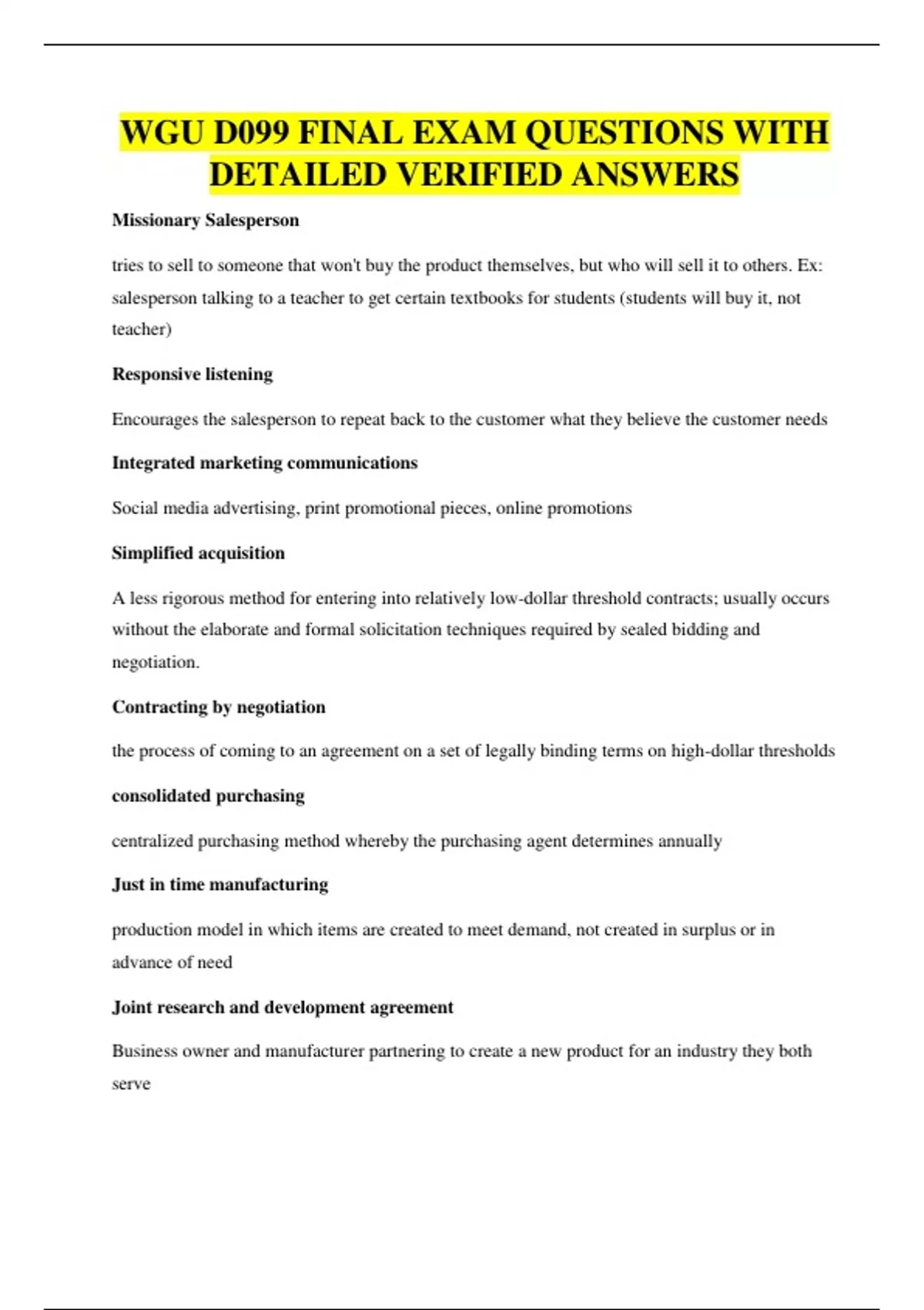 WGU D099 FINAL EXAM QUESTIONS WITH