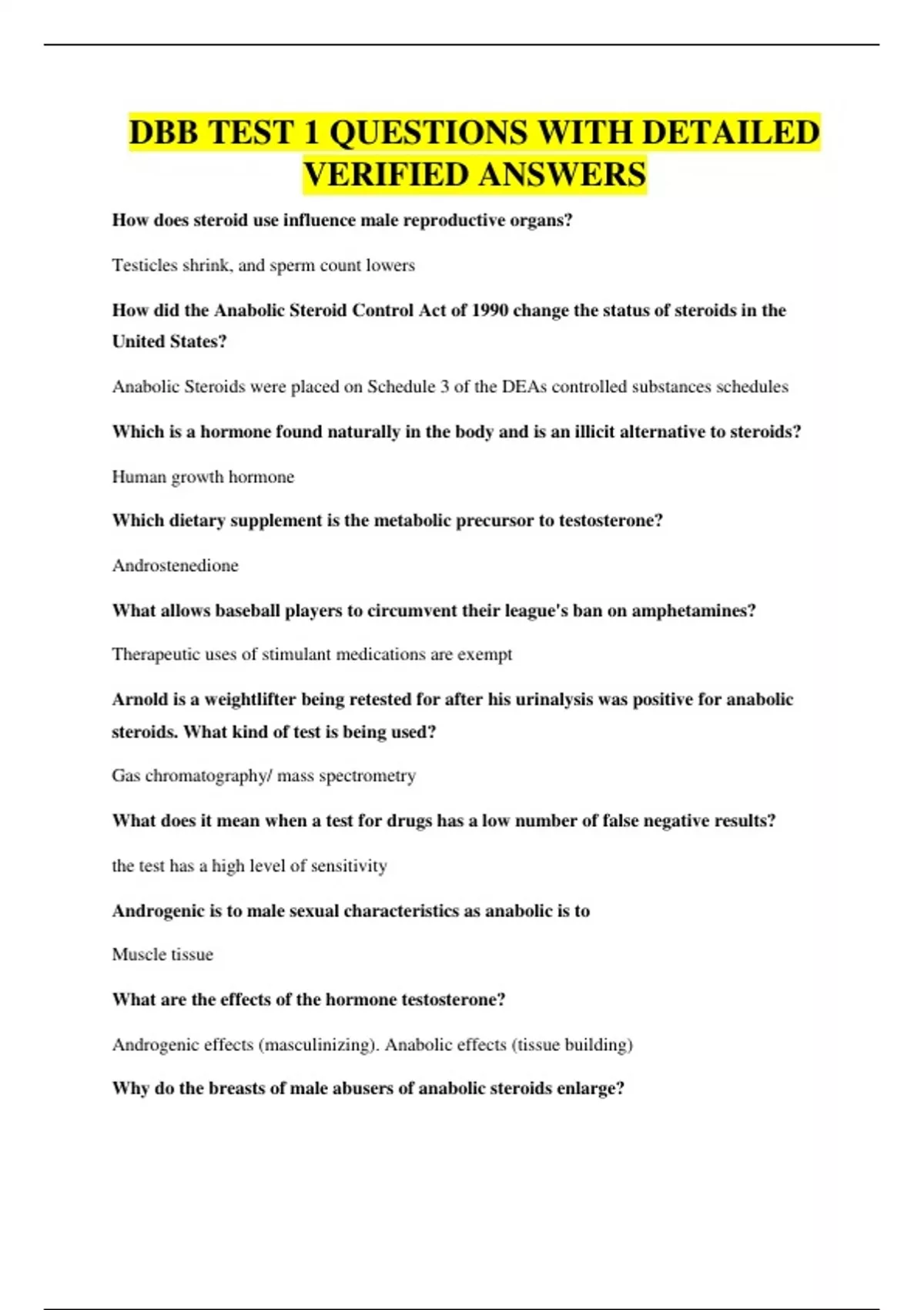 DBB TEST 1 QUESTIONS WITH DETAILED VERIFIED ANSWERS
