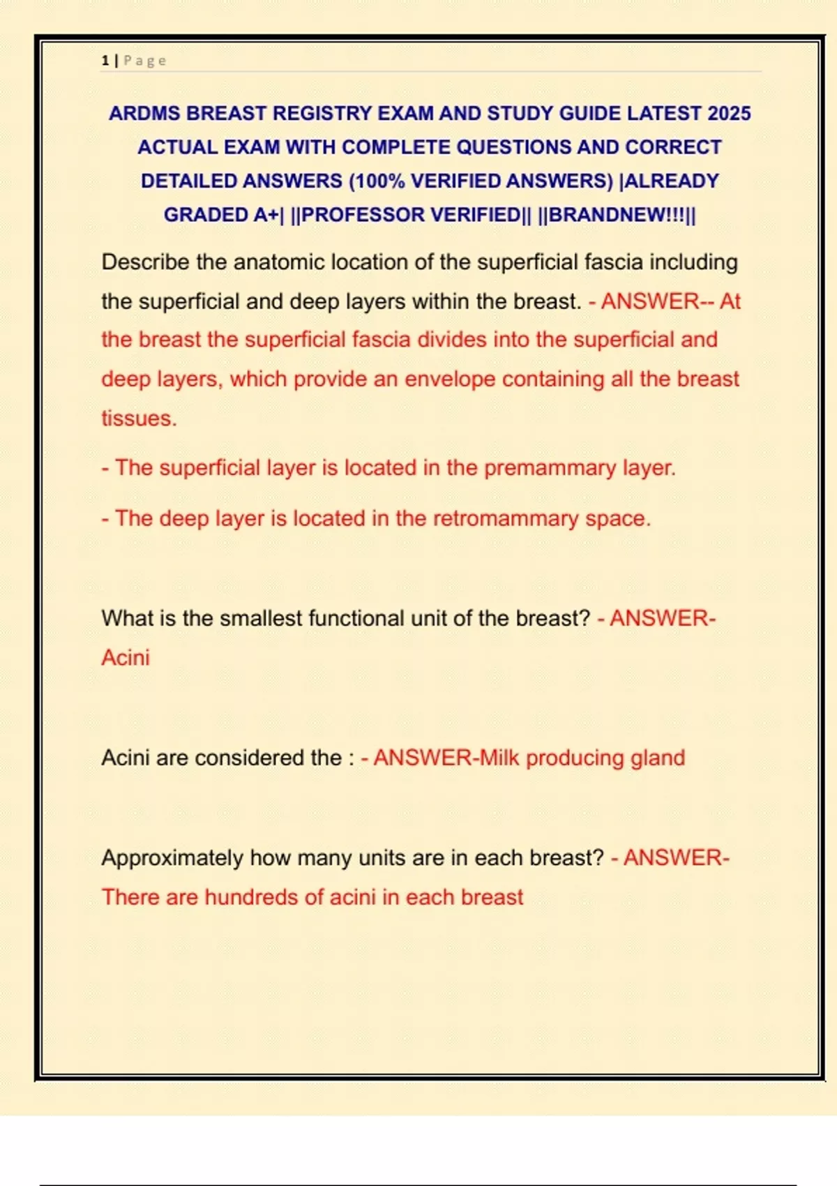 ARDMS BREAST REGISTRY EXAM AND STUDY GUIDE LATEST 2025