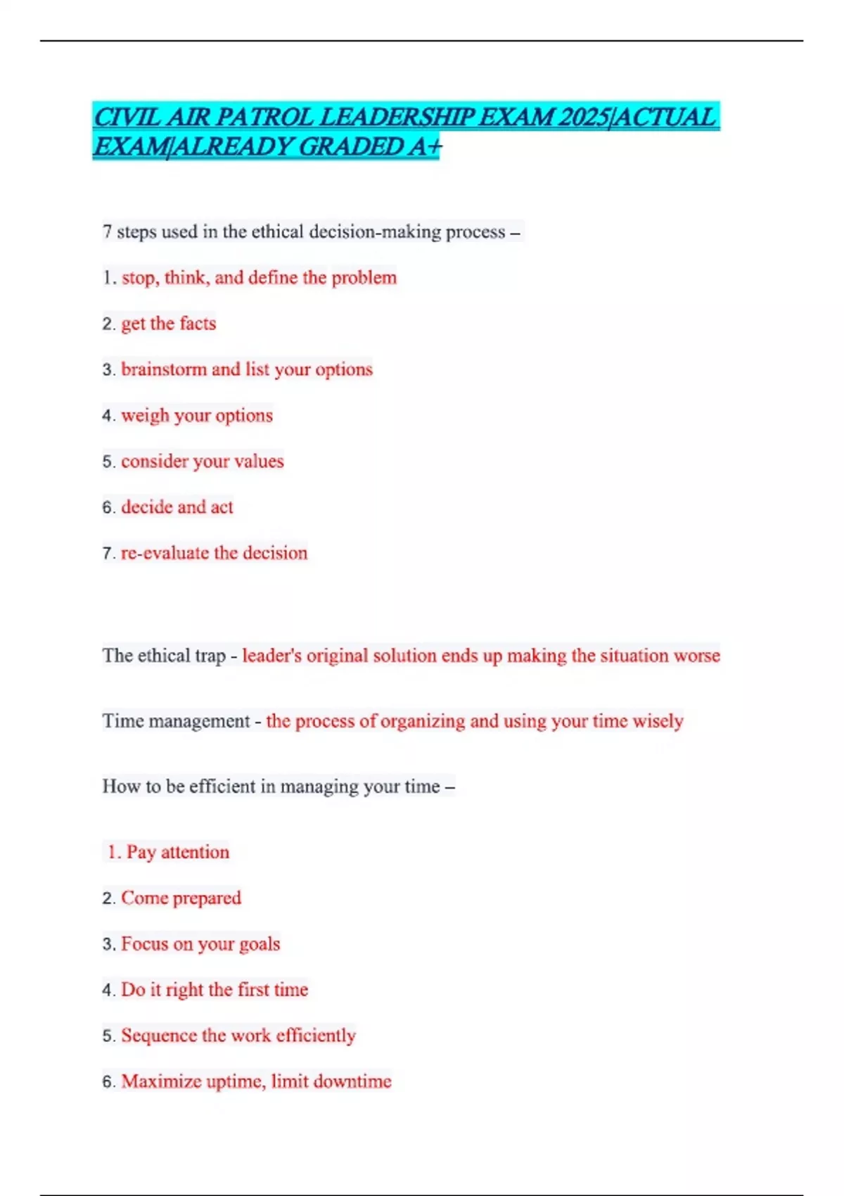 CIVIL AIR PATROL LEADERSHIP EXAM 2025|ACTUAL EXAM|ALREADY GRADED A+