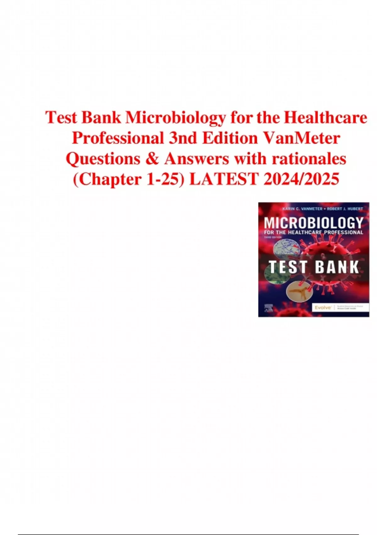 Comprehensive test bank for Microbiology for the Healthcare Professional, 3rd Edition by Karin VanMeter. Designed for healthcare students, it features chapter-based questions and answers—perfect for nursing and allied health exam prep