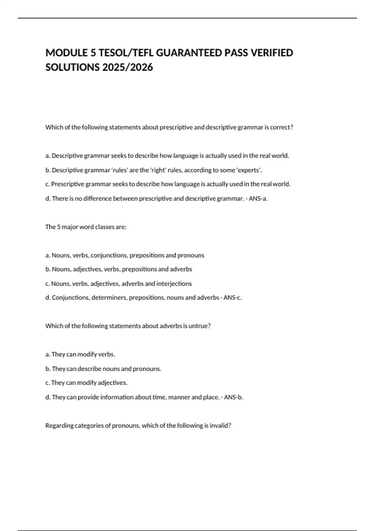 MODULE 5 TESOL/TEFL GUARANTEED PASS VERIFIED