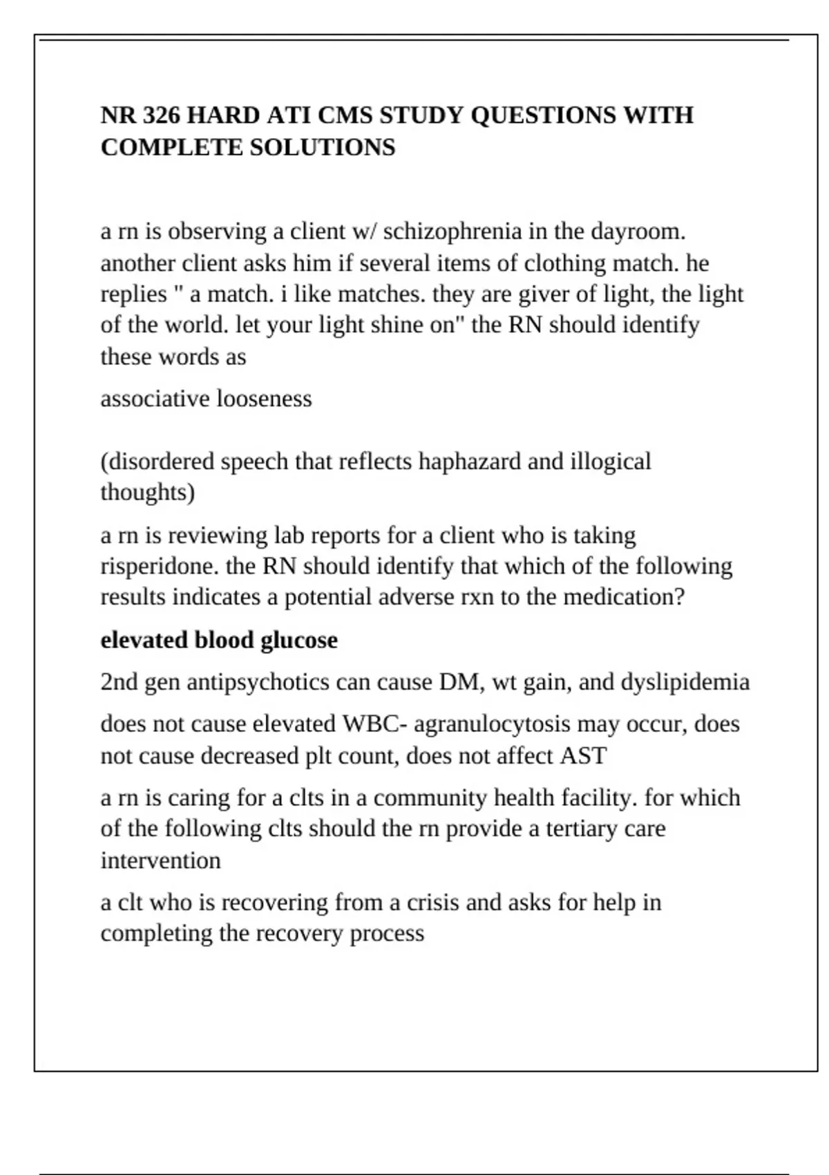NR 326 HARD ATI CMS STUDY QUESTIONS WITH COMPLETE SOLUTIONS