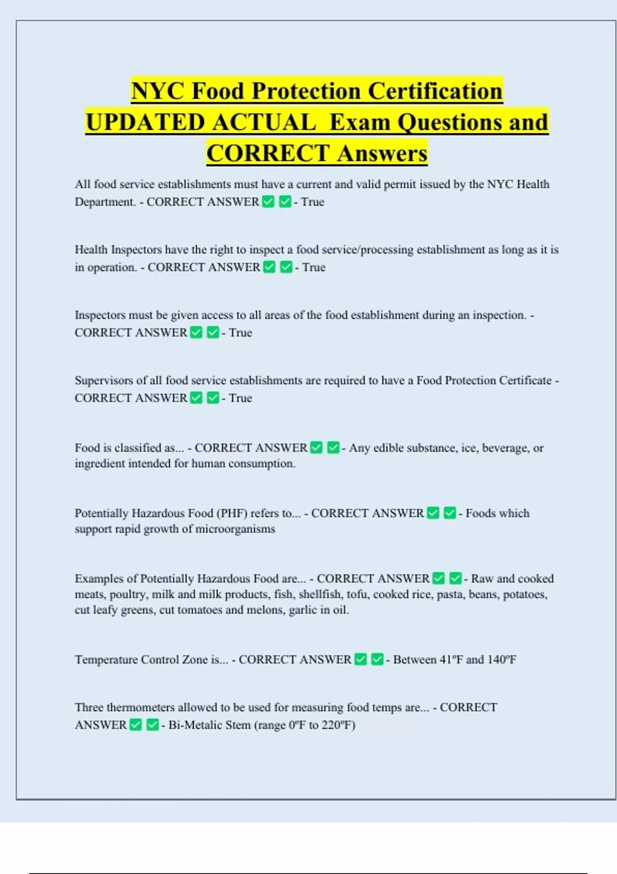 Examples of Potentially Hazardous Food are... - CORRECT ANSWER - Raw and cooked