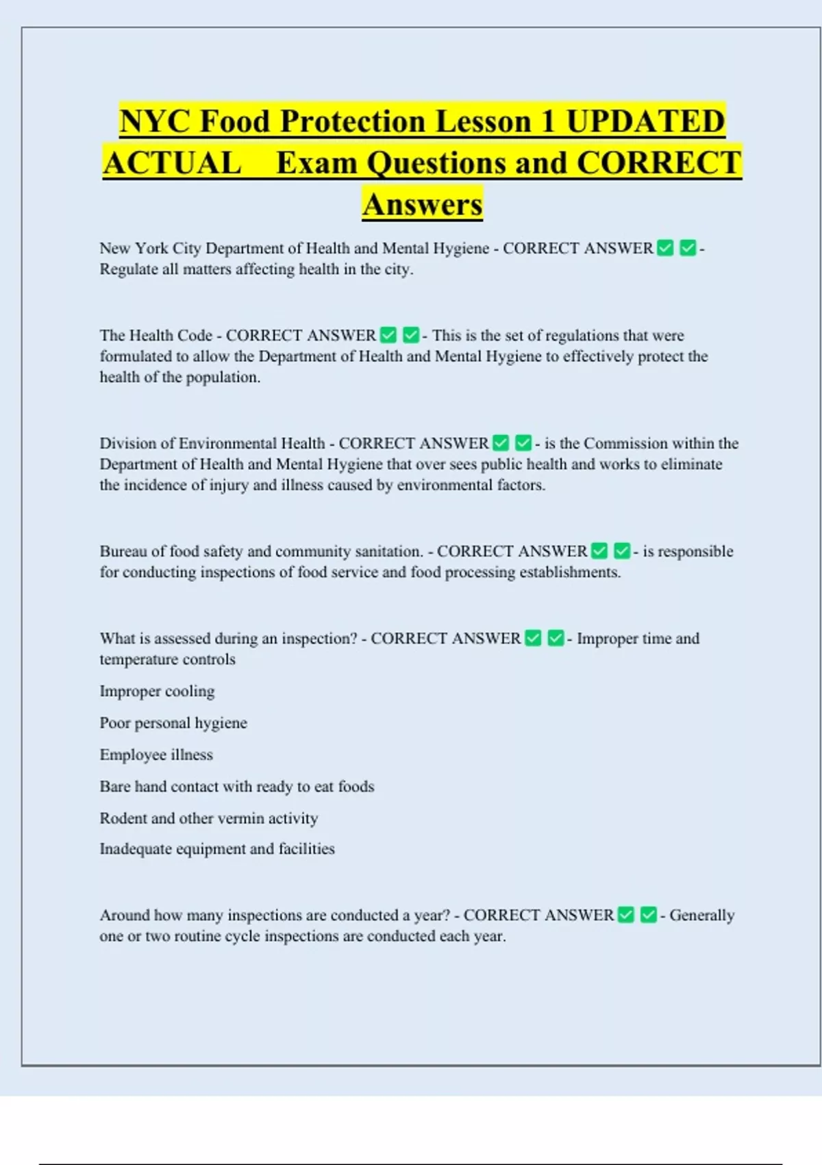 New York City Department of Health and Mental Hygiene - CORRECT ANSWER -