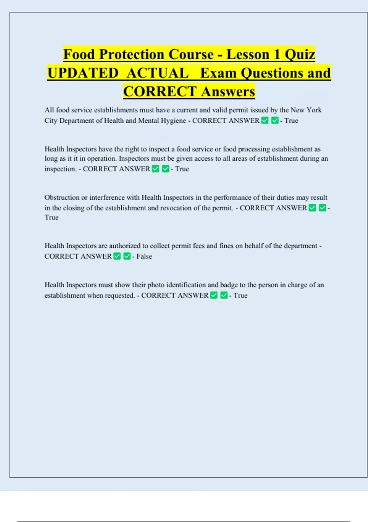 inspection. - CORRECT ANSWER - True