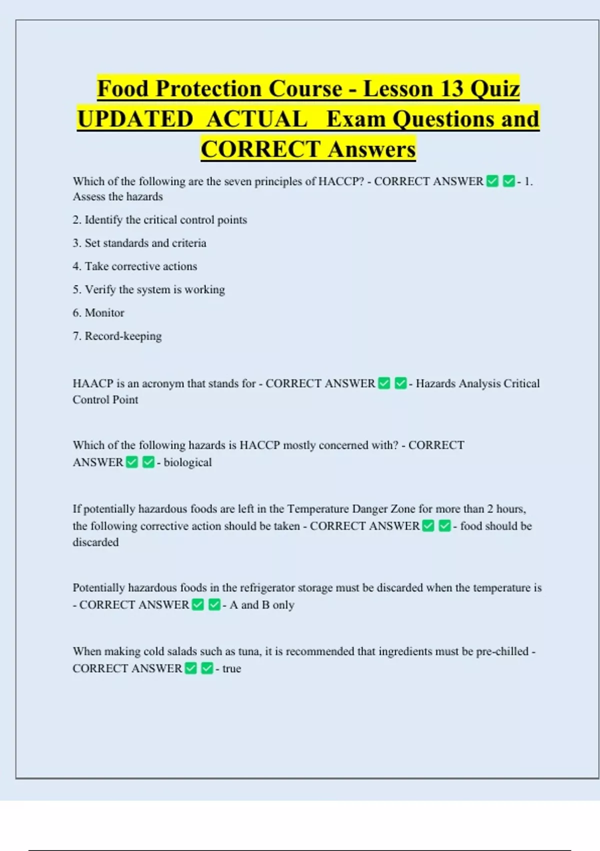 Which of the following are the seven principles of HACCP? - CORRECT ANSWER - 1.