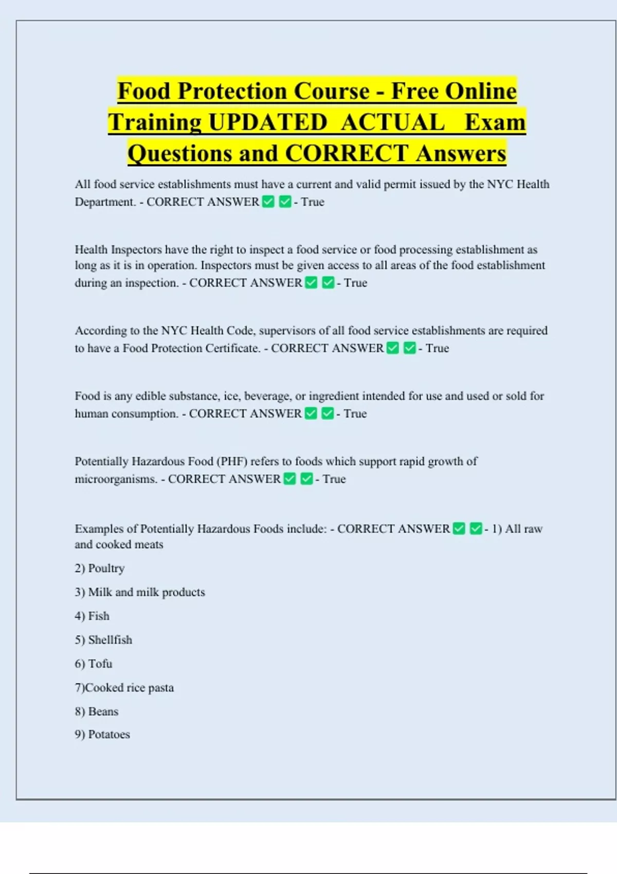 to have a Food Protection Certificate. - CORRECT ANSWER - True