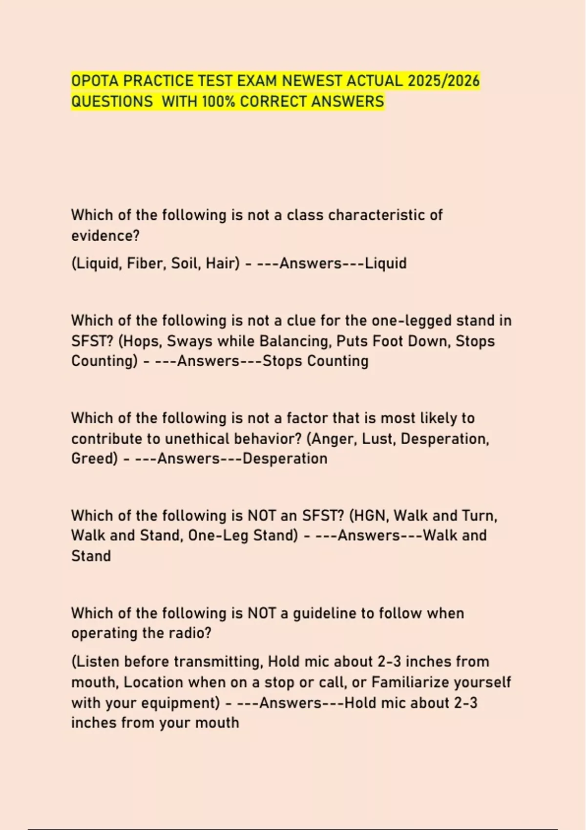 OPOTA PRACTICE TEST EXAM NEWEST ACTUAL 2025/2026