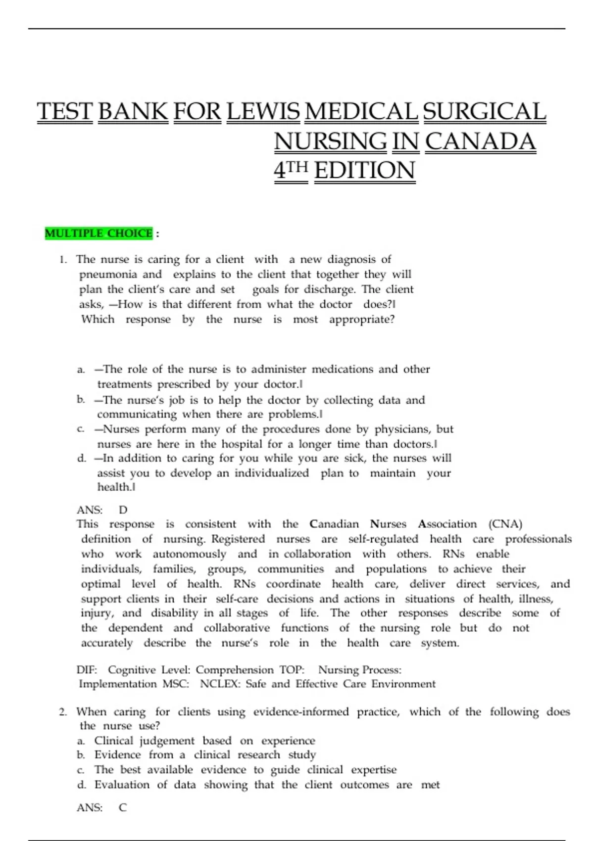 TEST BANK For Lewis's Medical Surgical Nursing in Canada, 4th Edition by Jane Tyerman, Shelley Cobbett, Verified Chapters 1 - 72, Complete Newest VersionTEST BANK For Lewis's Medical Surgical Nursing in Canada, 4th Edition by Jane Tyerman, Shelley Cobbett, Verified Chapters 1 - 72, Complete Newest VersionTEST BANK For Lewis's Medical Surgical Nursing in Canada, 4th Edition by Jane Tyerman, Shelley Cobbett, Verified Chapters 1 - 72, Complete Newest VersionTEST BANK For Lewis's Medical Surgical Nursing in Canada, 4th Edition by Jane Tyerman, Shelley Cobbett, Verified Chapters 1 - 72, Complete Newest VersionTEST BANK For Lewis's Medical Surgical Nursing in Canada, 4th Edition by Jane Tyerman, Shelley Cobbett, Verified Chapters 1 - 72, Complete Newest VersionTEST BANK For Lewis's Medical Surgical Nursing in Canada, 4th Edition by Jane Tyerman, Shelley Cobbett, Verified Chapters 1 - 72, Complete Newest VersionTEST BANK For Lewis's Medical Surgical Nursing in Canada, 4th Edition by Jane Tyerman, Shelley Cobbett, Verified Chapters 1 - 72, Complete Newest Version