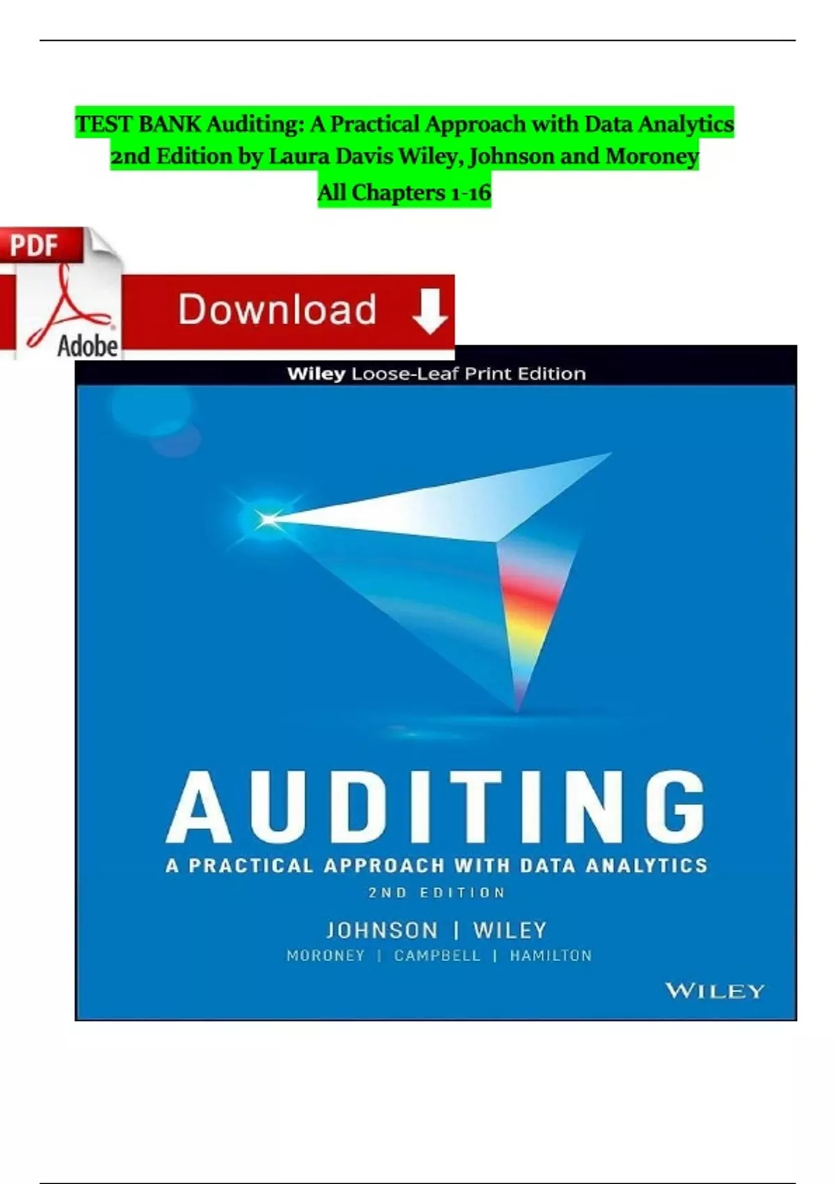 TEST BANK Auditing: A Practical Approach with Data Analytics 2nd Edition by Laura Davis Wiley, Johnson and Moroney All Chapters 1-16 Complete Newest Edition Instant Download PDF