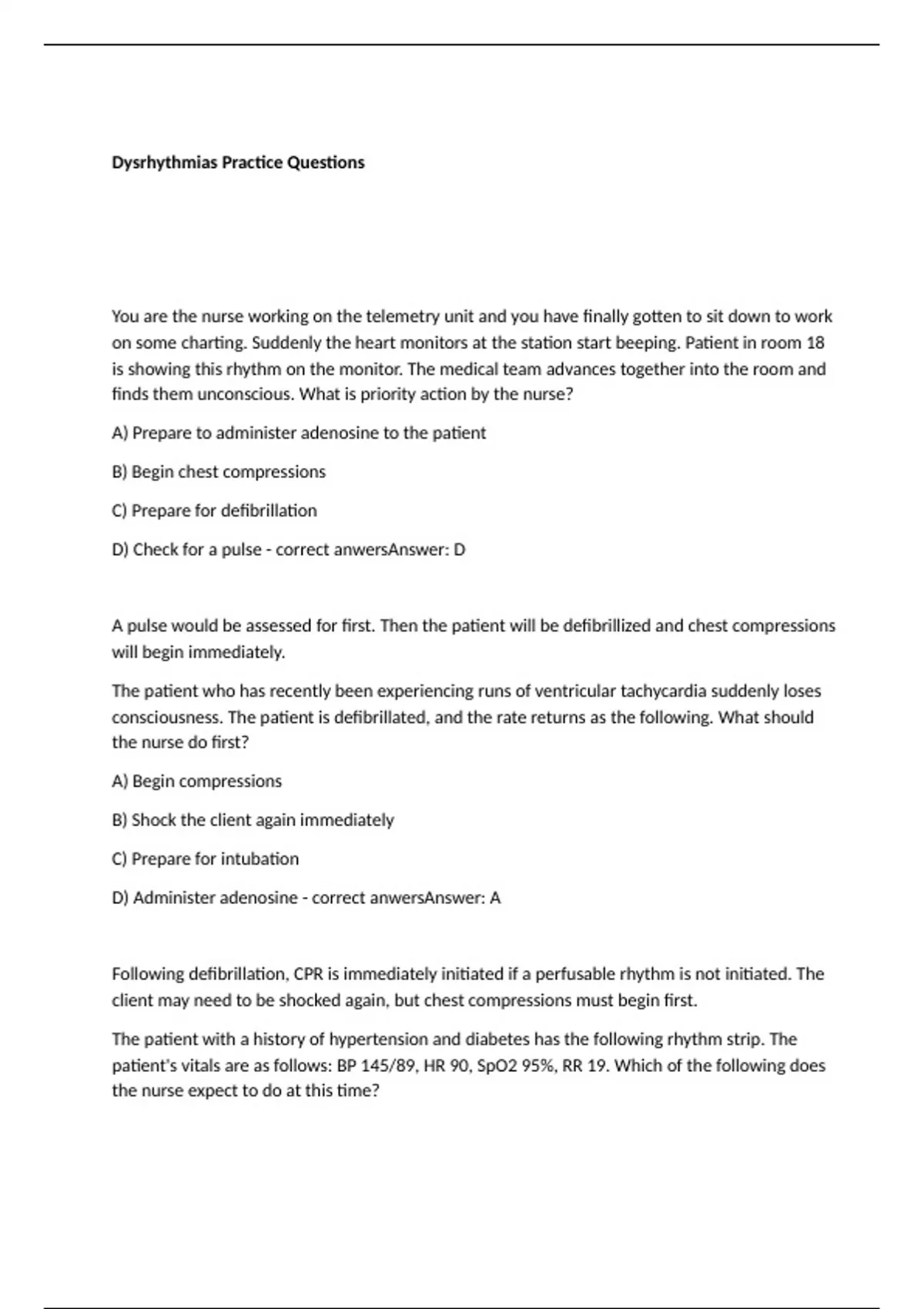 d) Begin chest compressions - correct anwersAnswer: B
