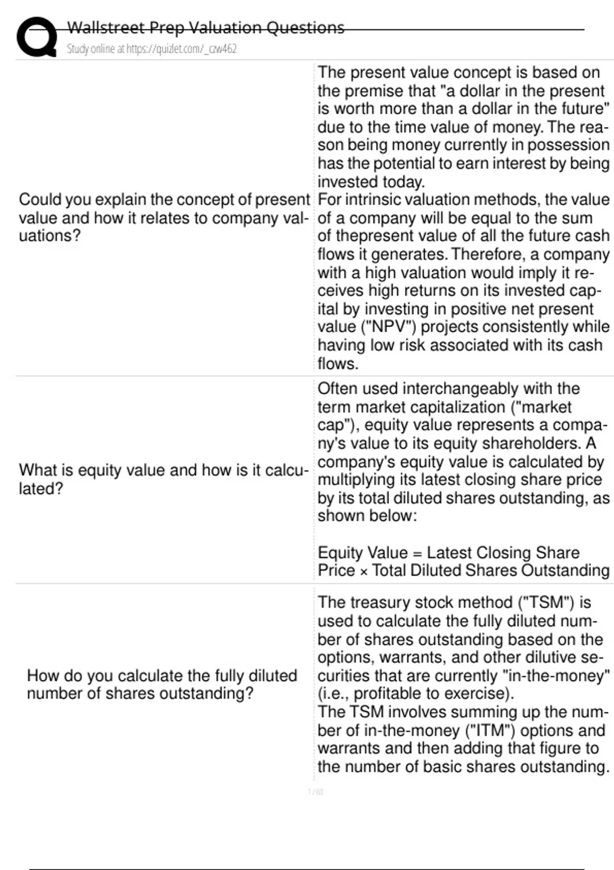 Wallstreet Prep Valuation Questions