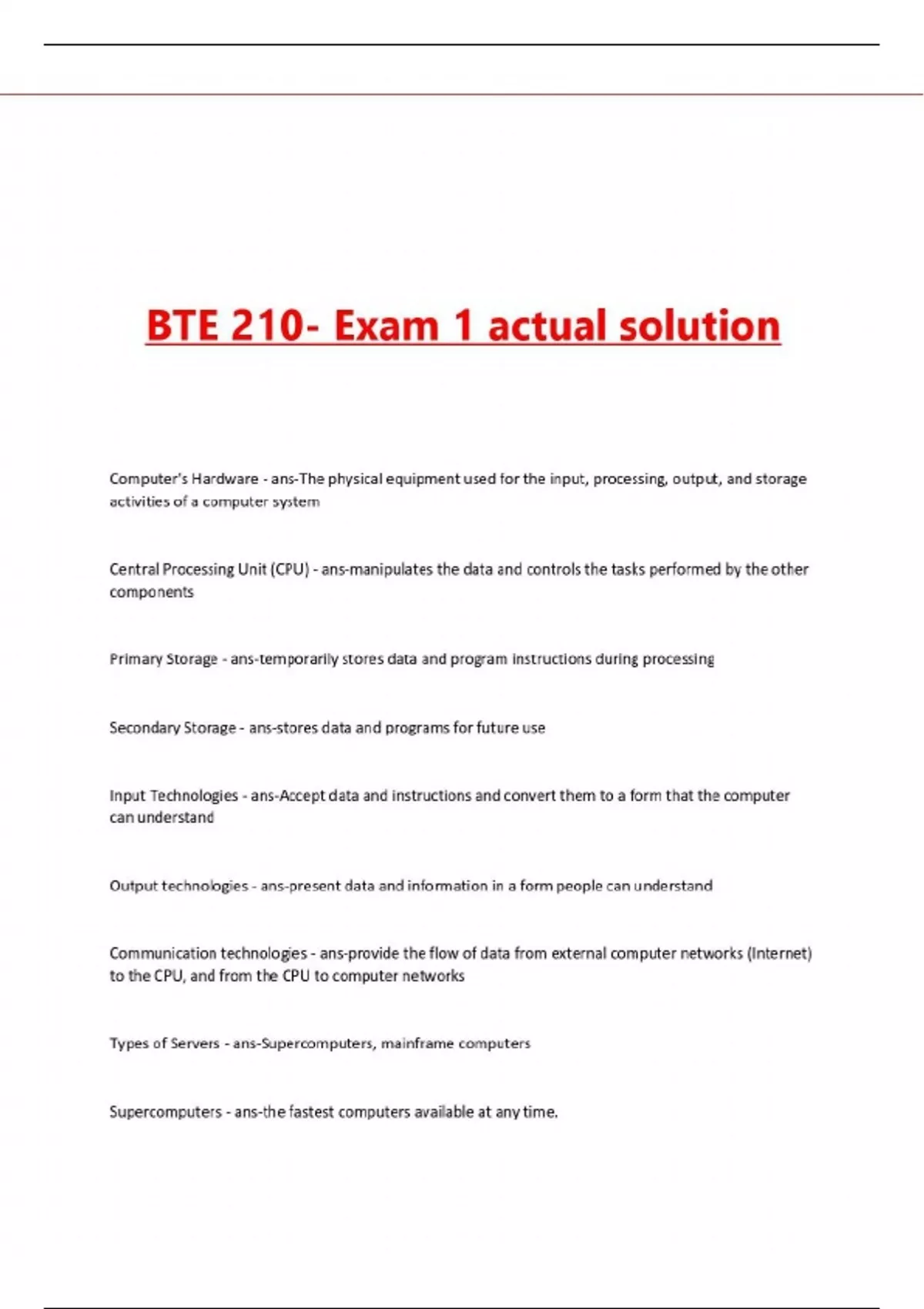 bte 210 exam 1 actual solution pdf