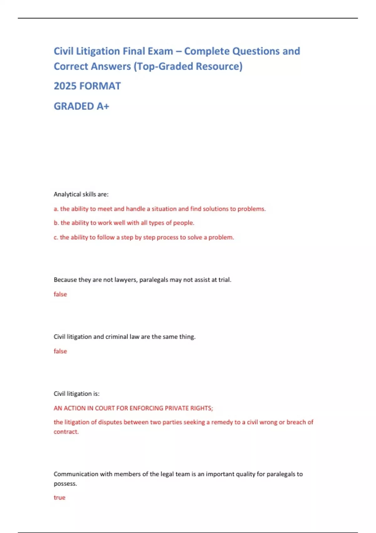 Correct Answers (Top-Graded Resource)