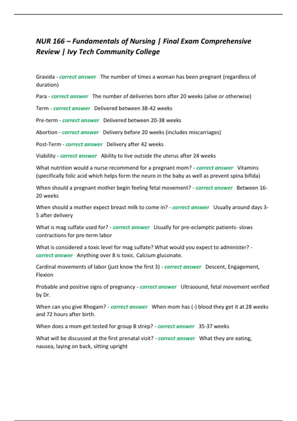 Term - correct answer Delivered between 38-42 weeks